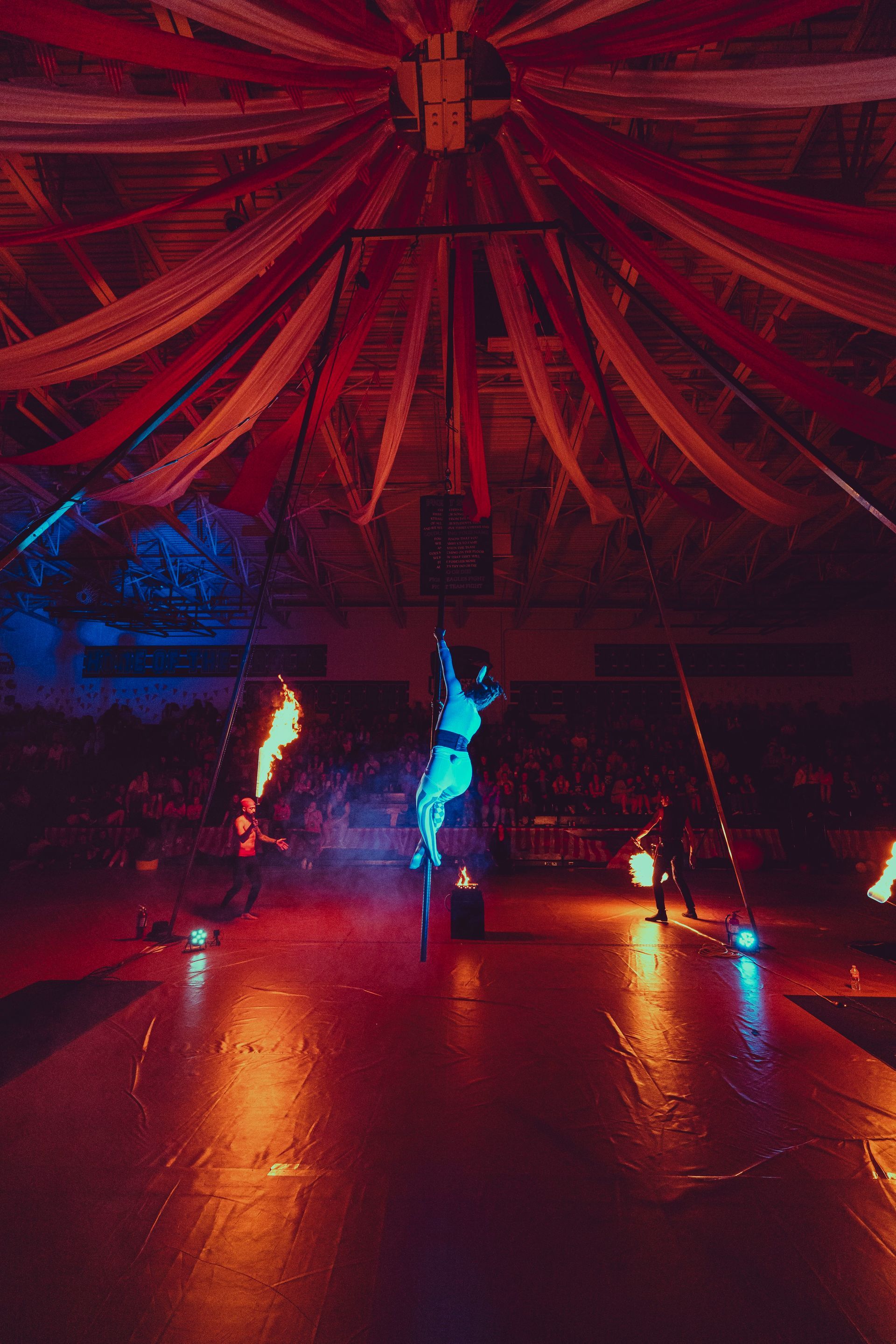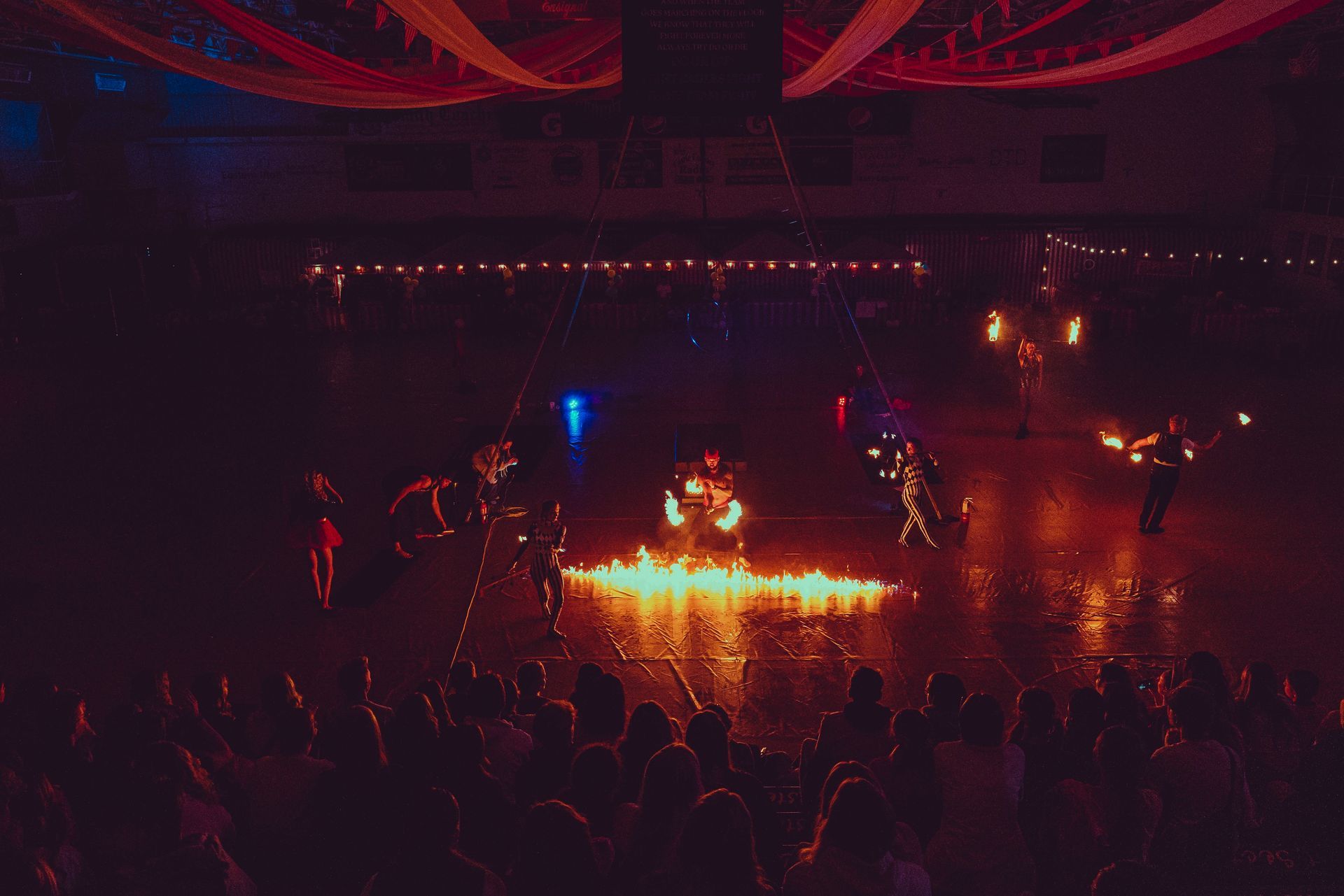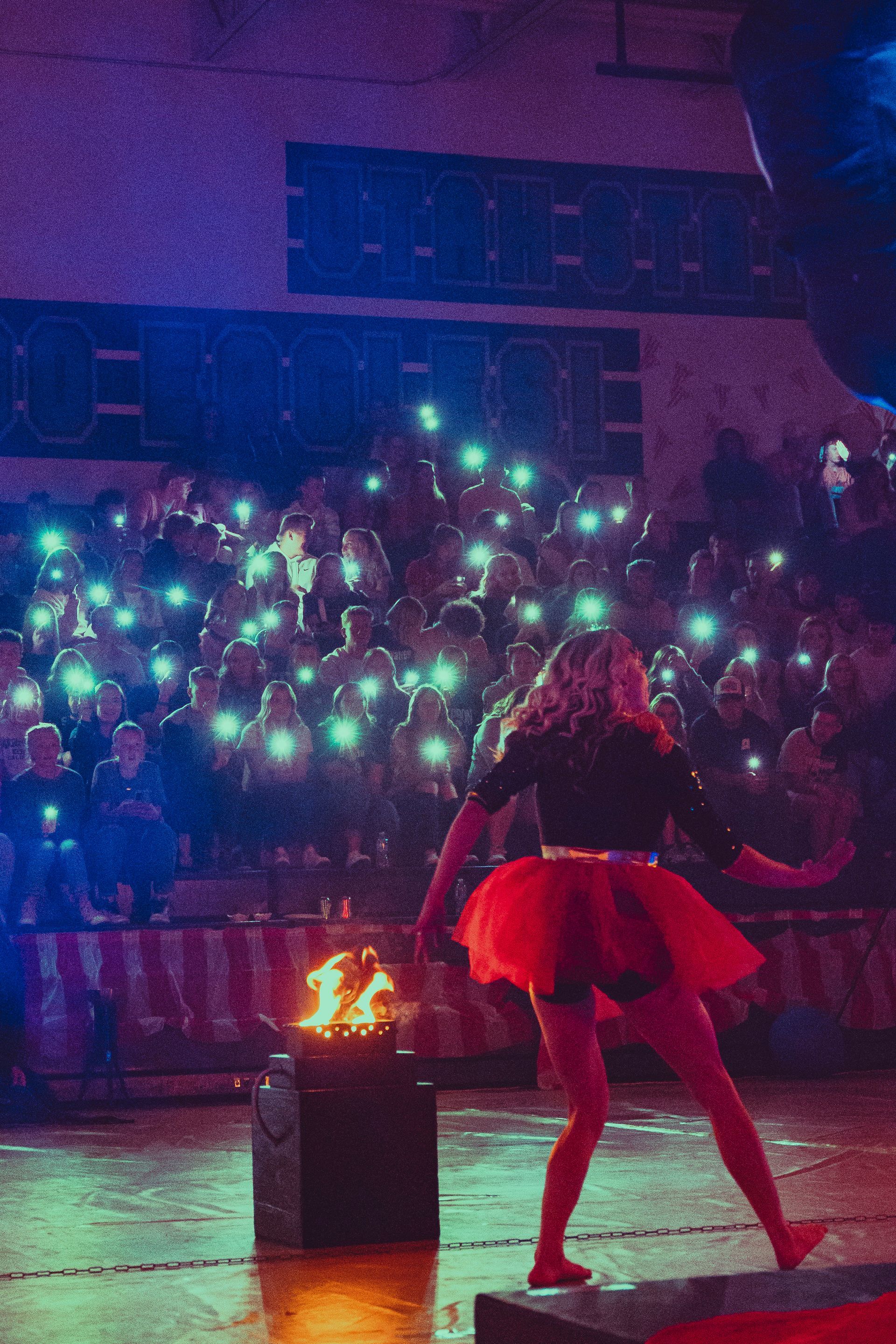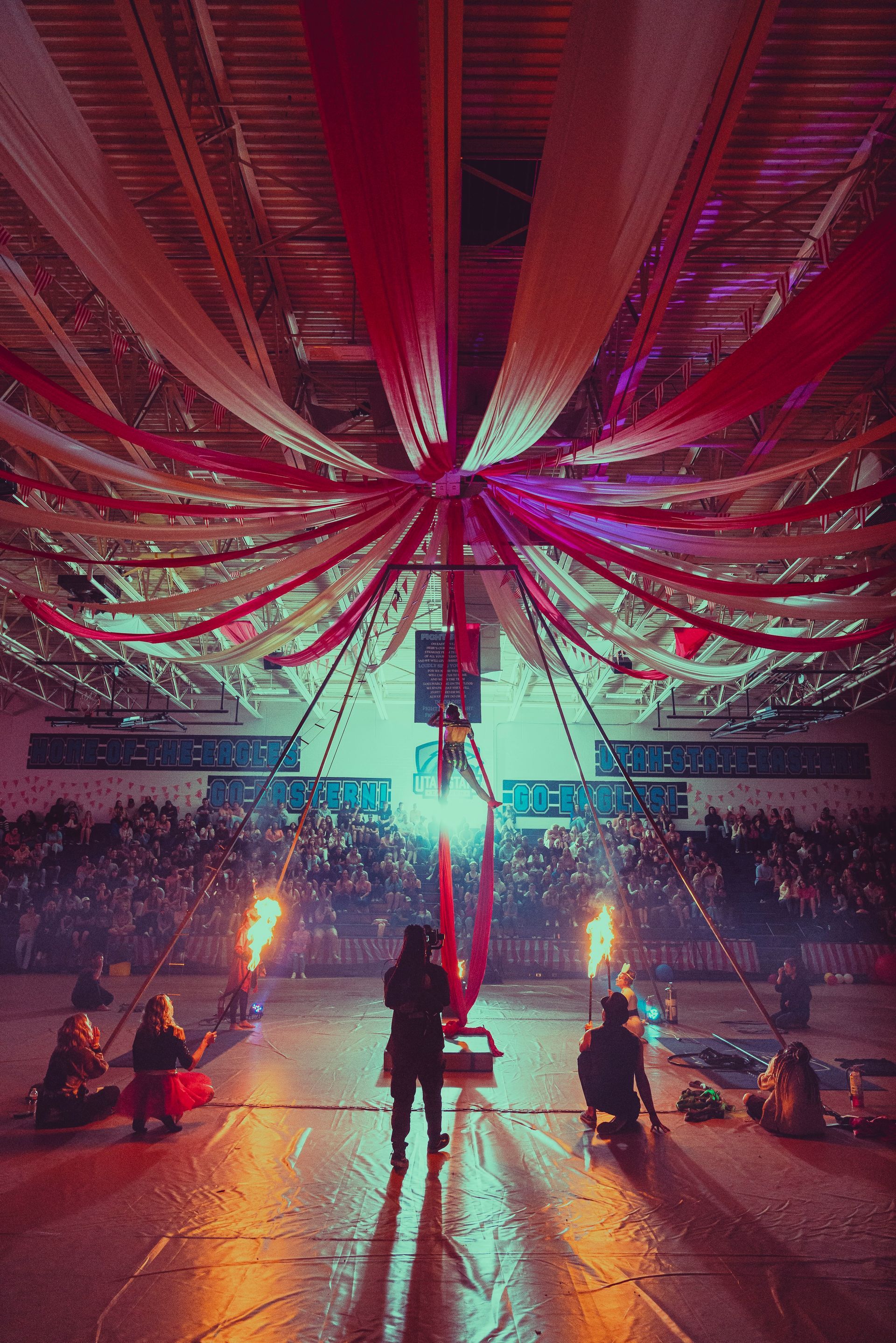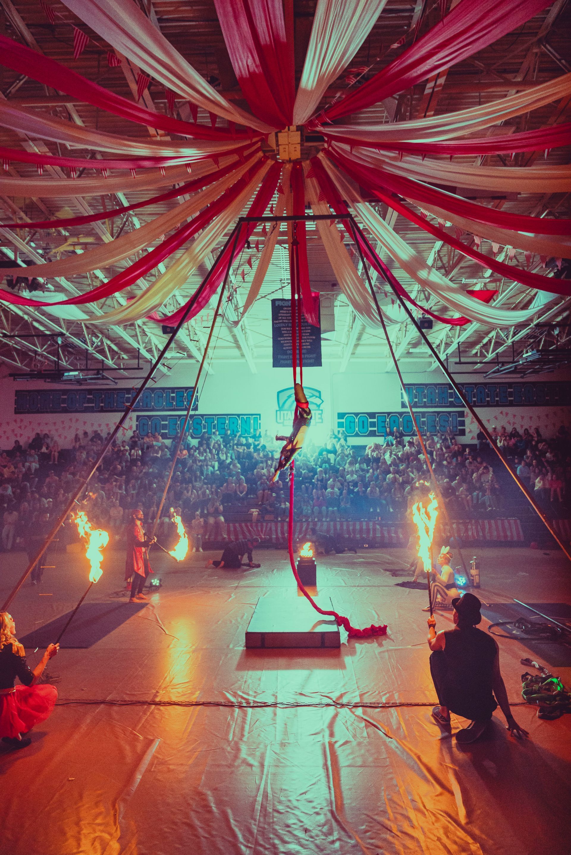 700 High School Grads • 9 Fire Performers • 5 Aerialists • 6 Acrobats • 4 Fire Breathers • 1 Circus Bunny