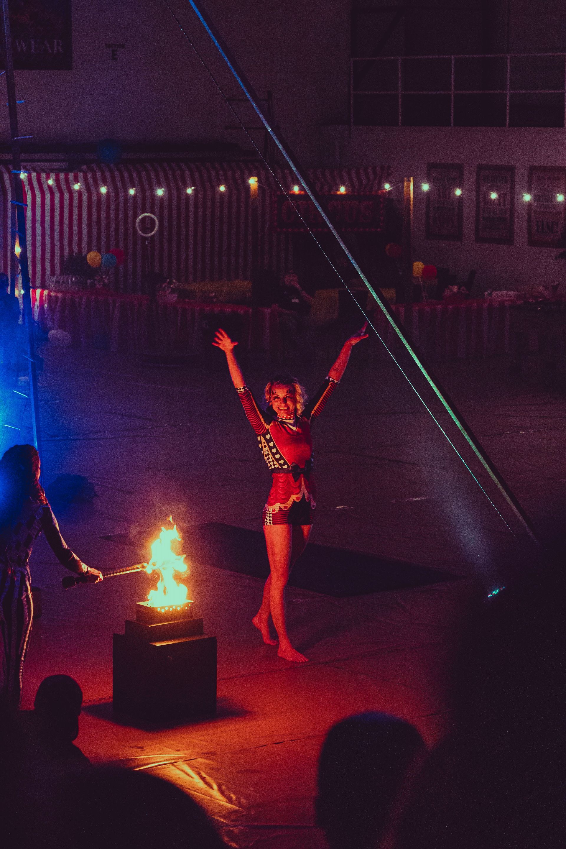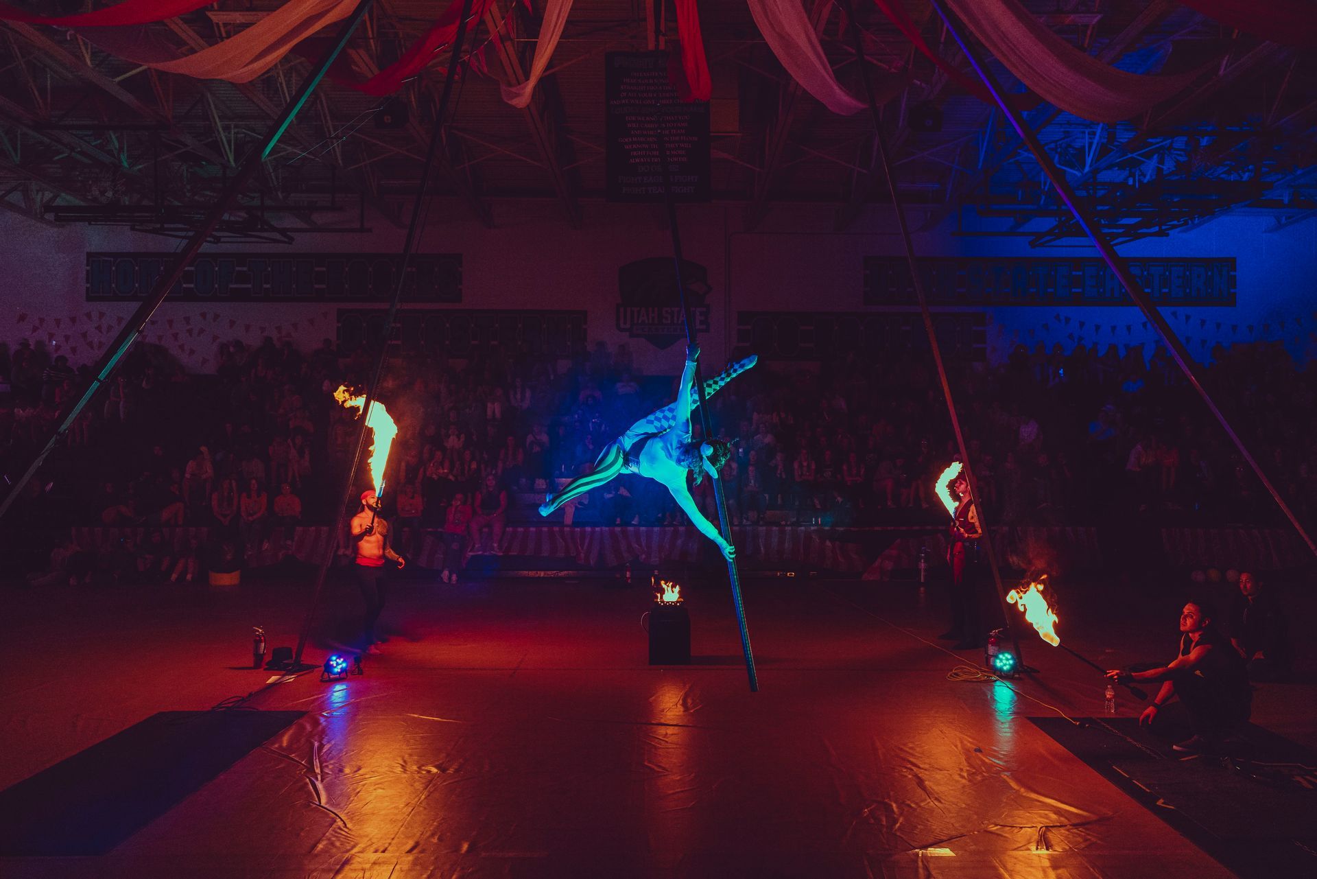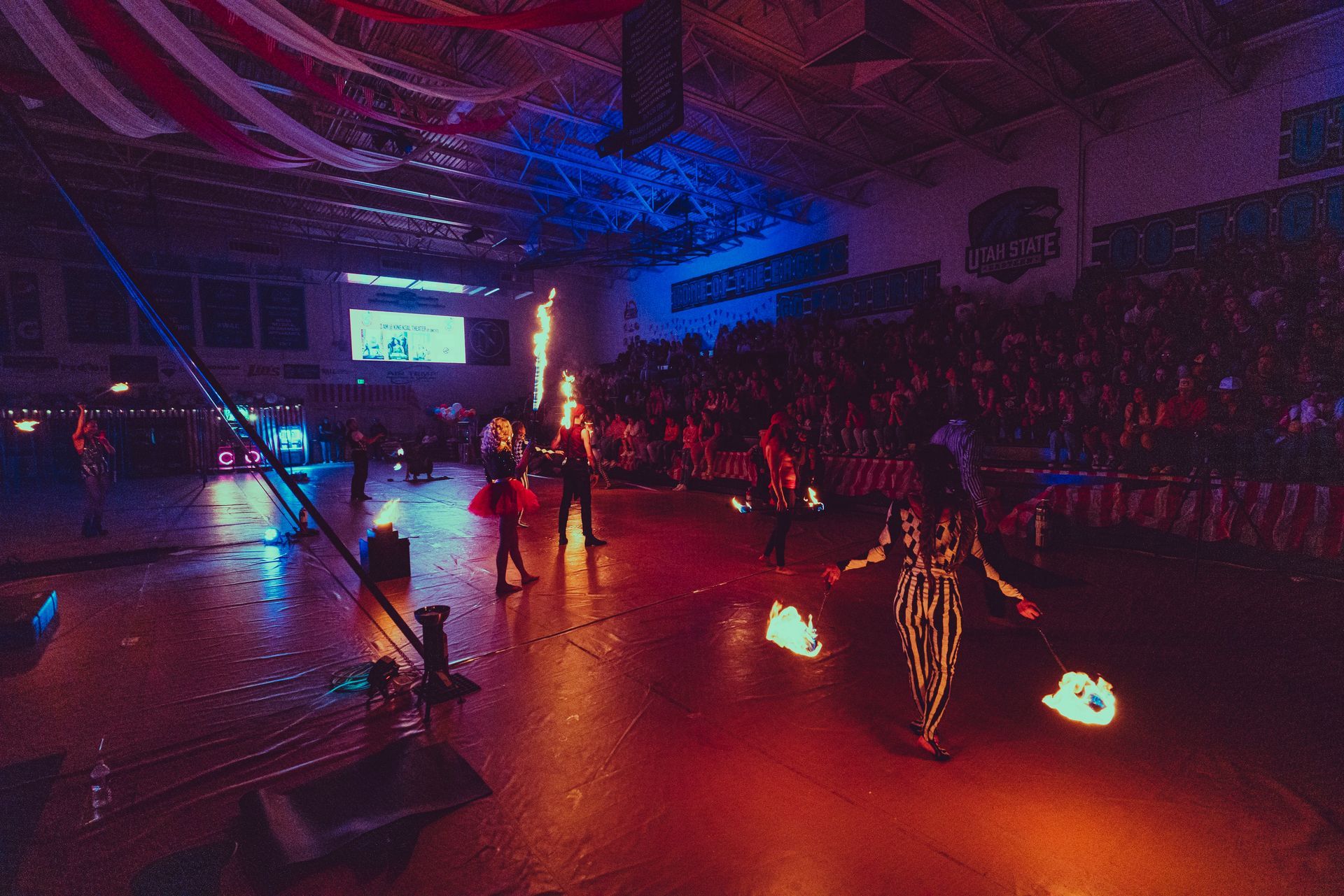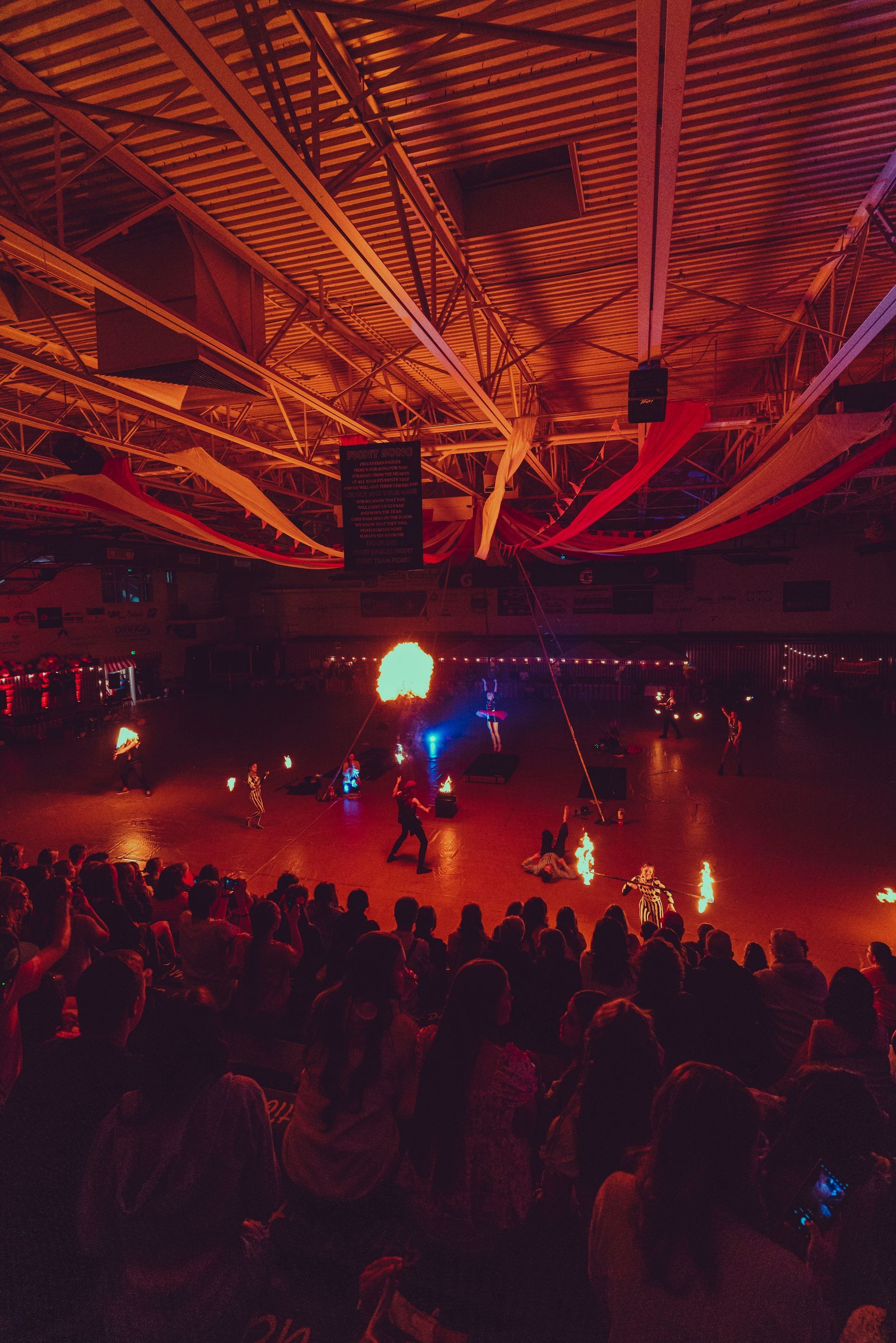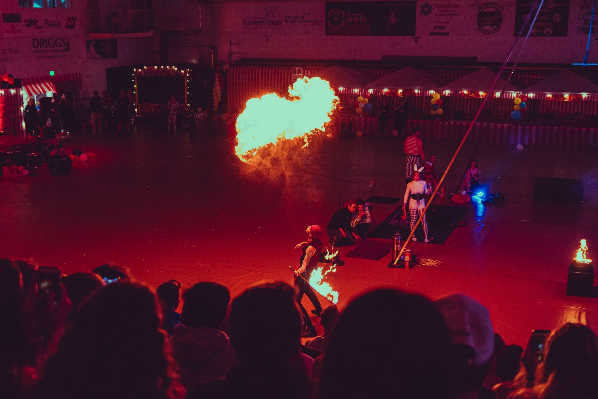700 High School Grads • 9 Fire Performers • 5 Aerialists • 6 Acrobats • 4 Fire Breathers • 1 Circus Bunny