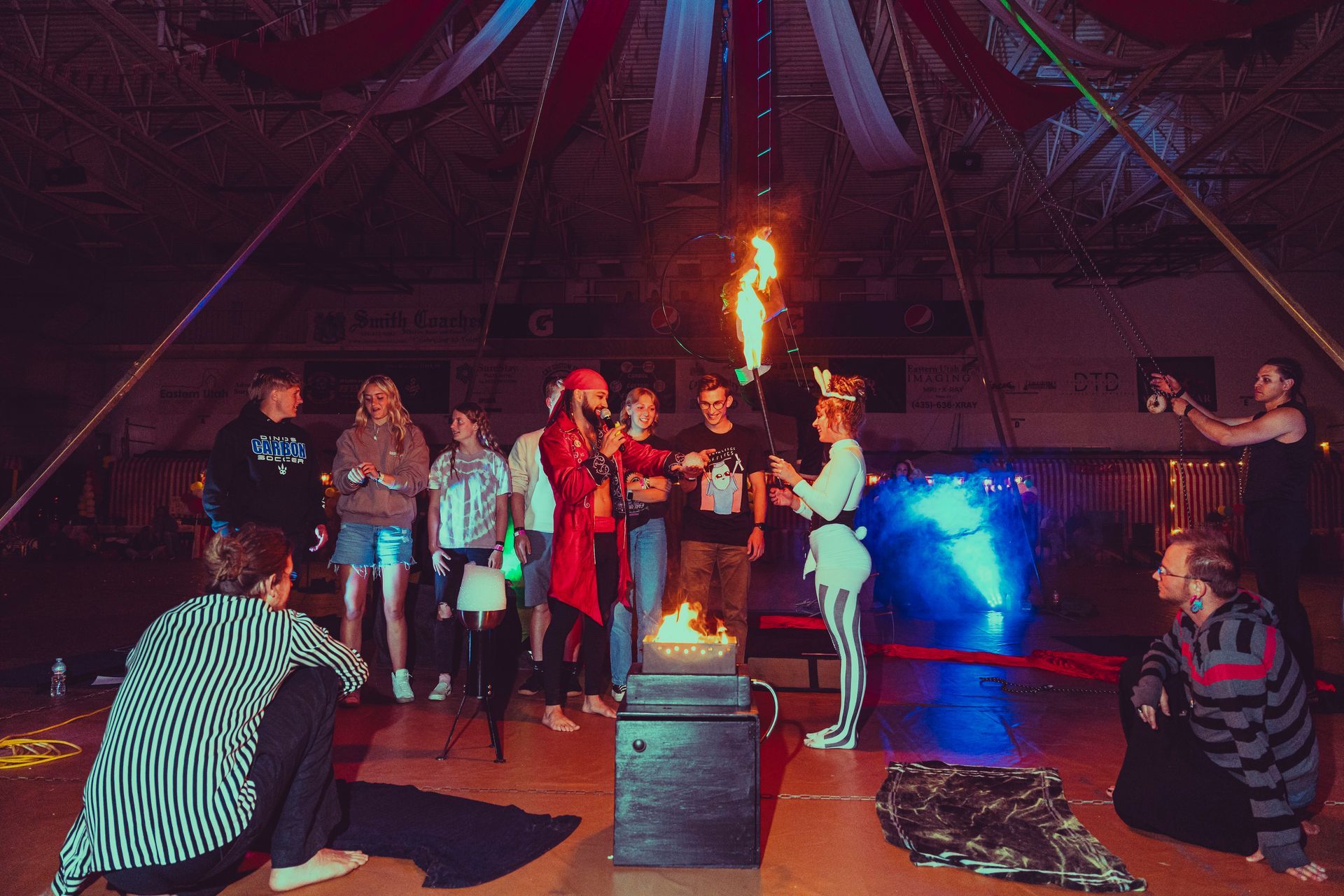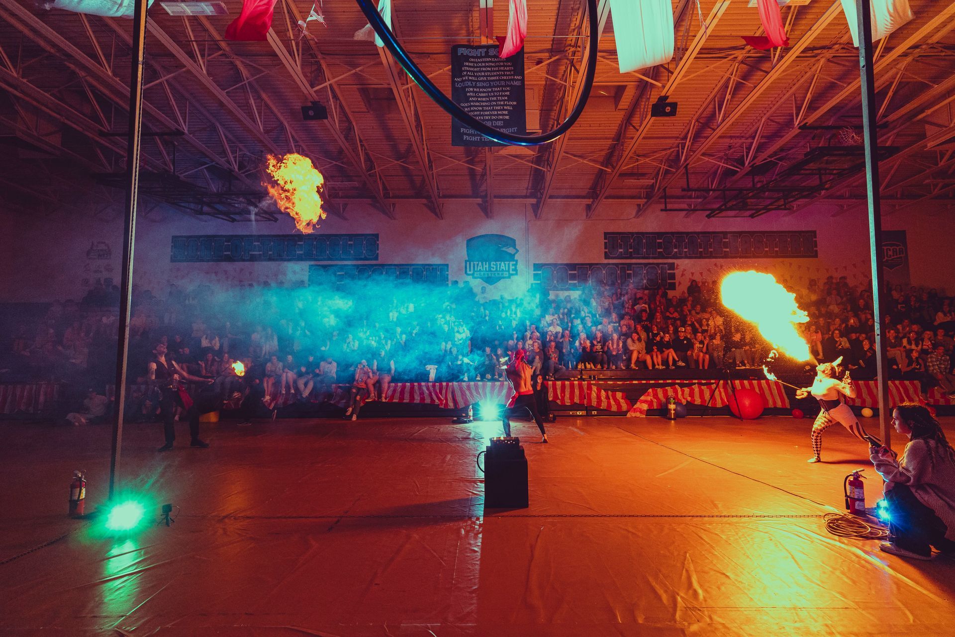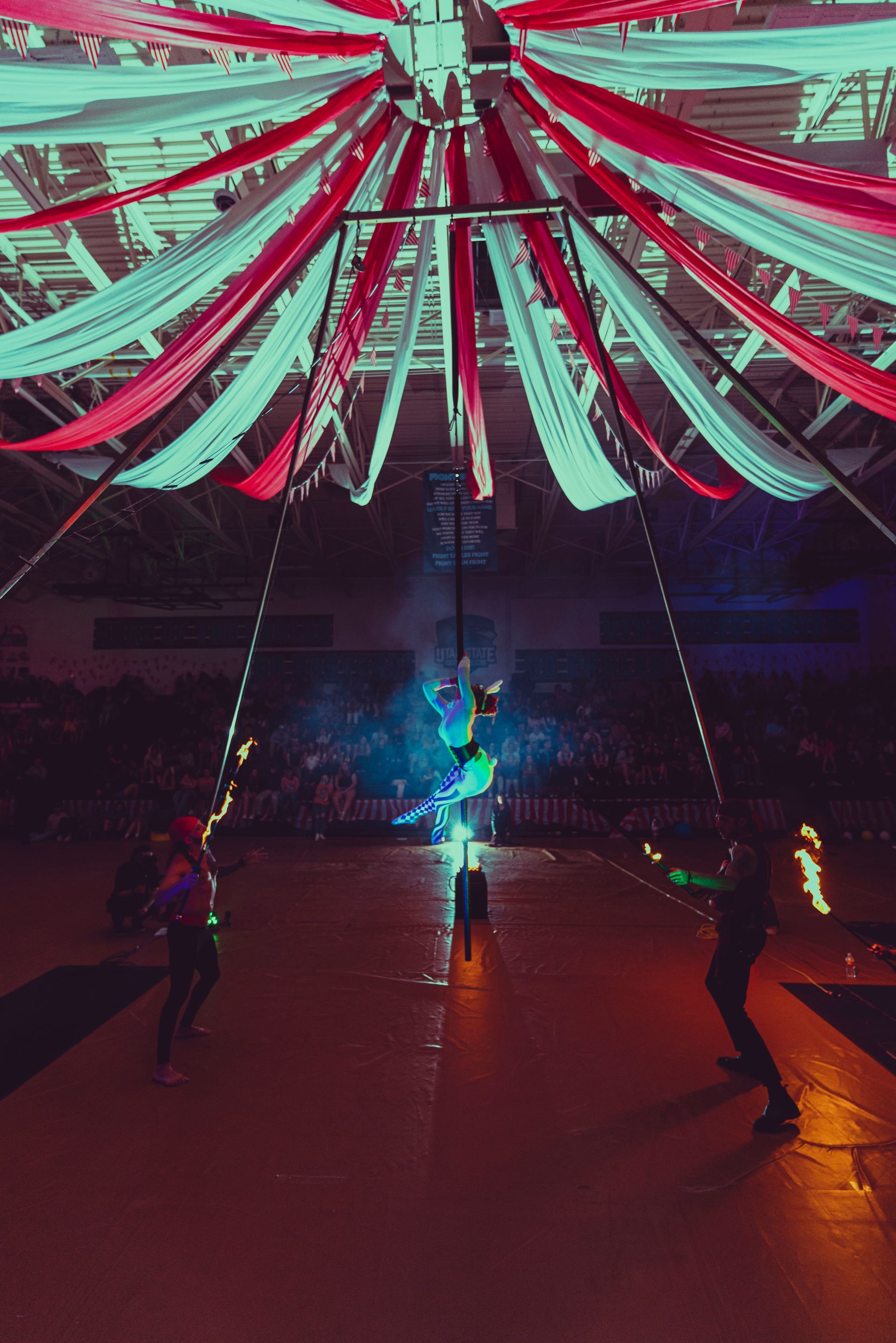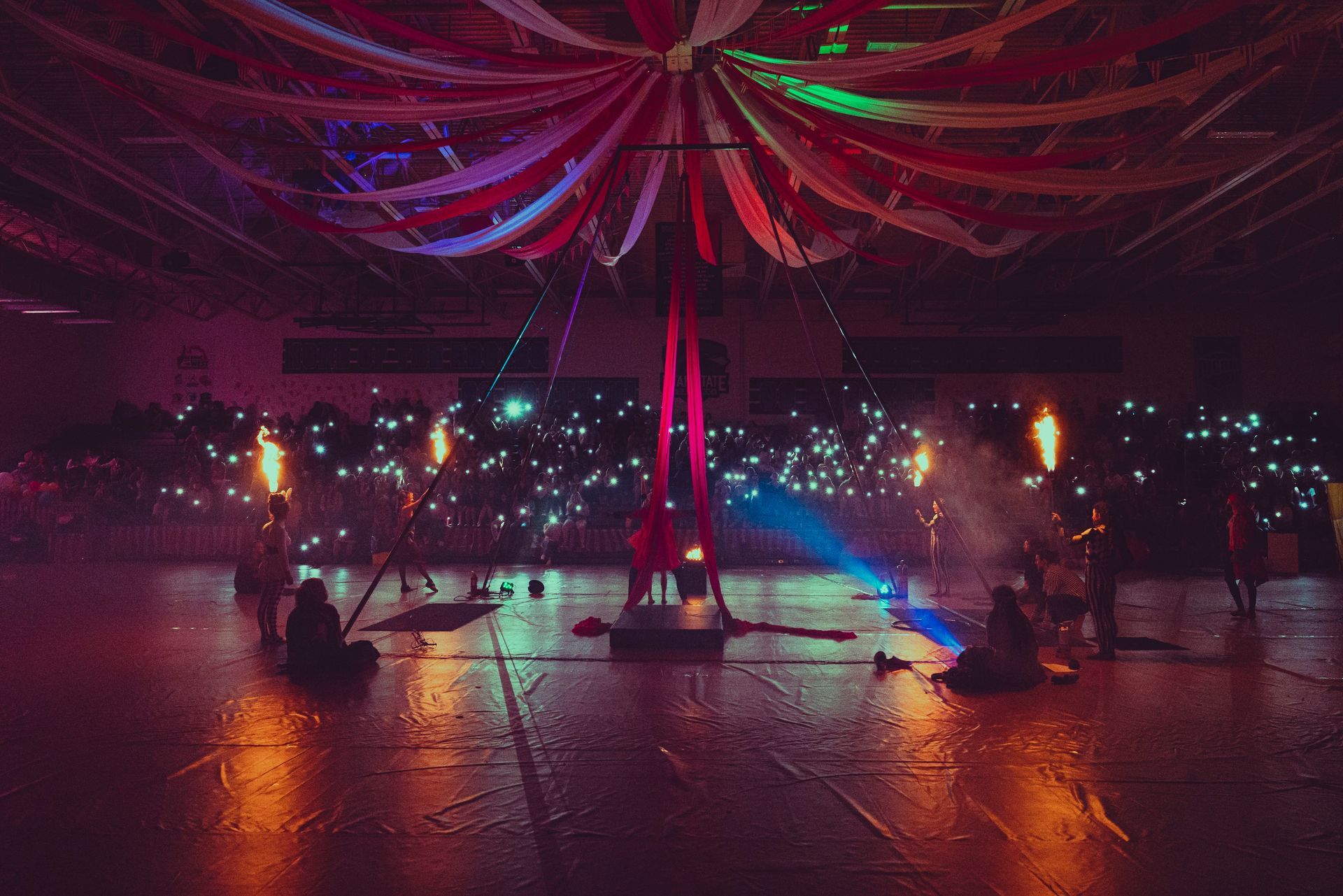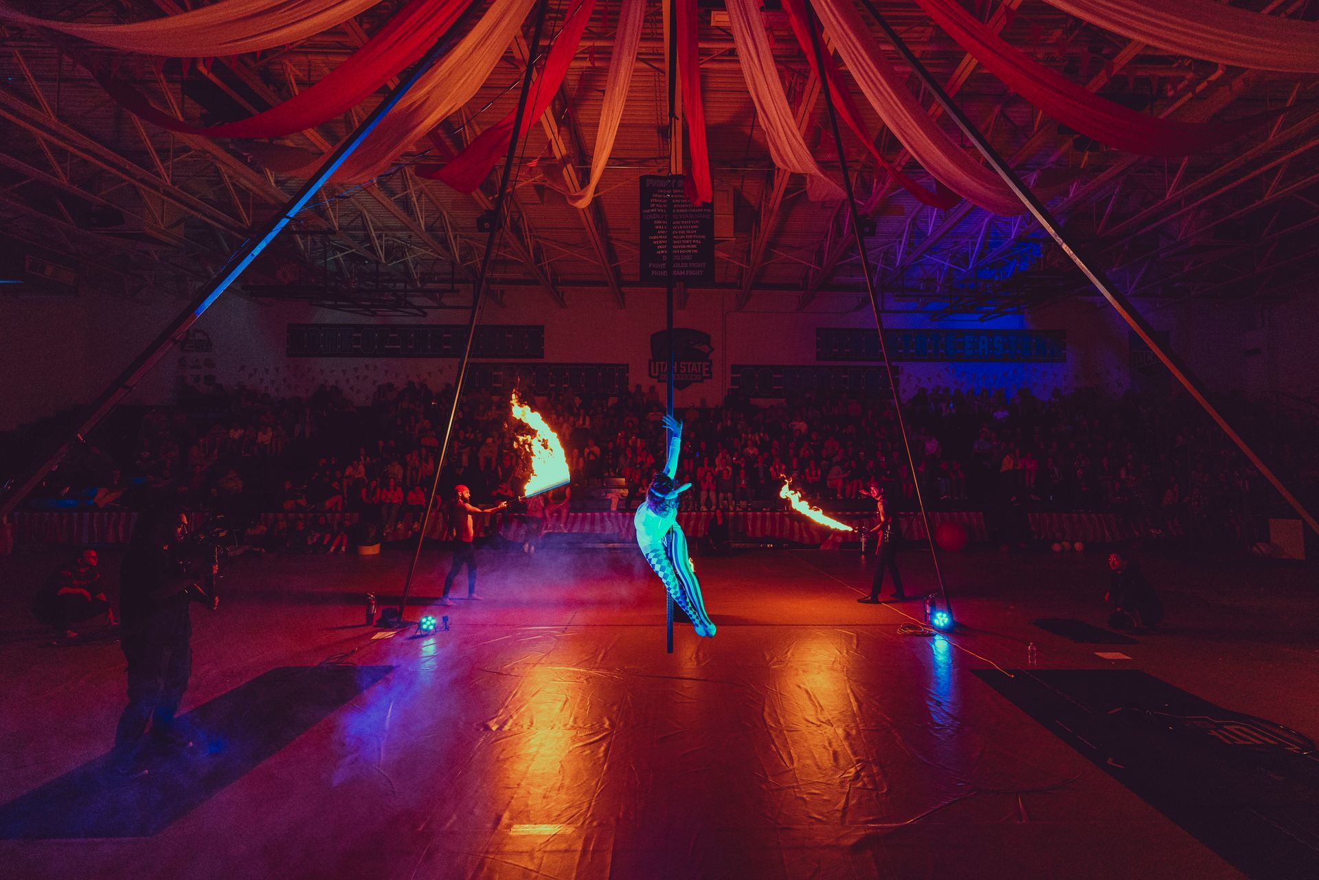 700 High School Grads • 9 Fire Performers • 5 Aerialists • 6 Acrobats • 4 Fire Breathers • 1 Circus Bunny