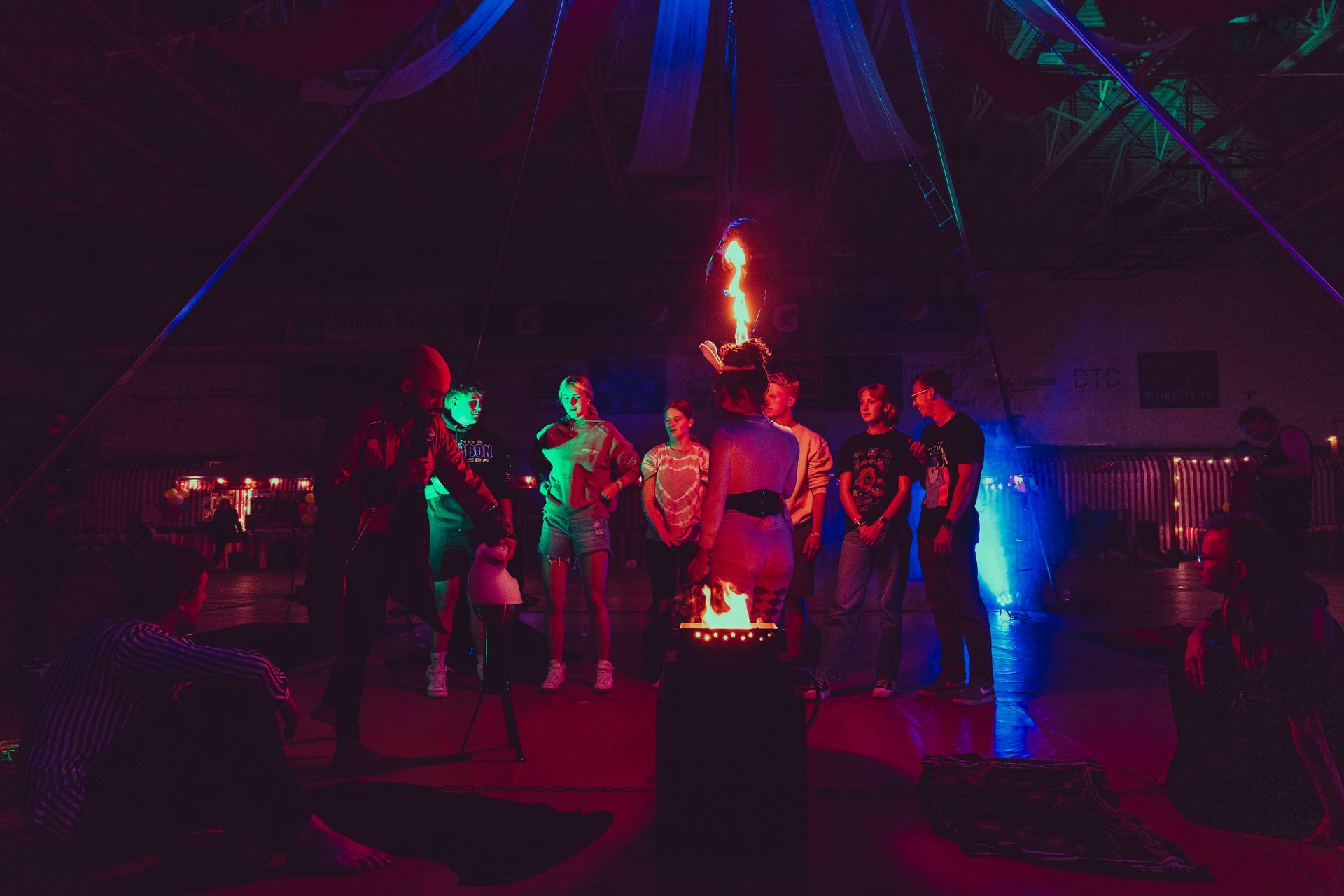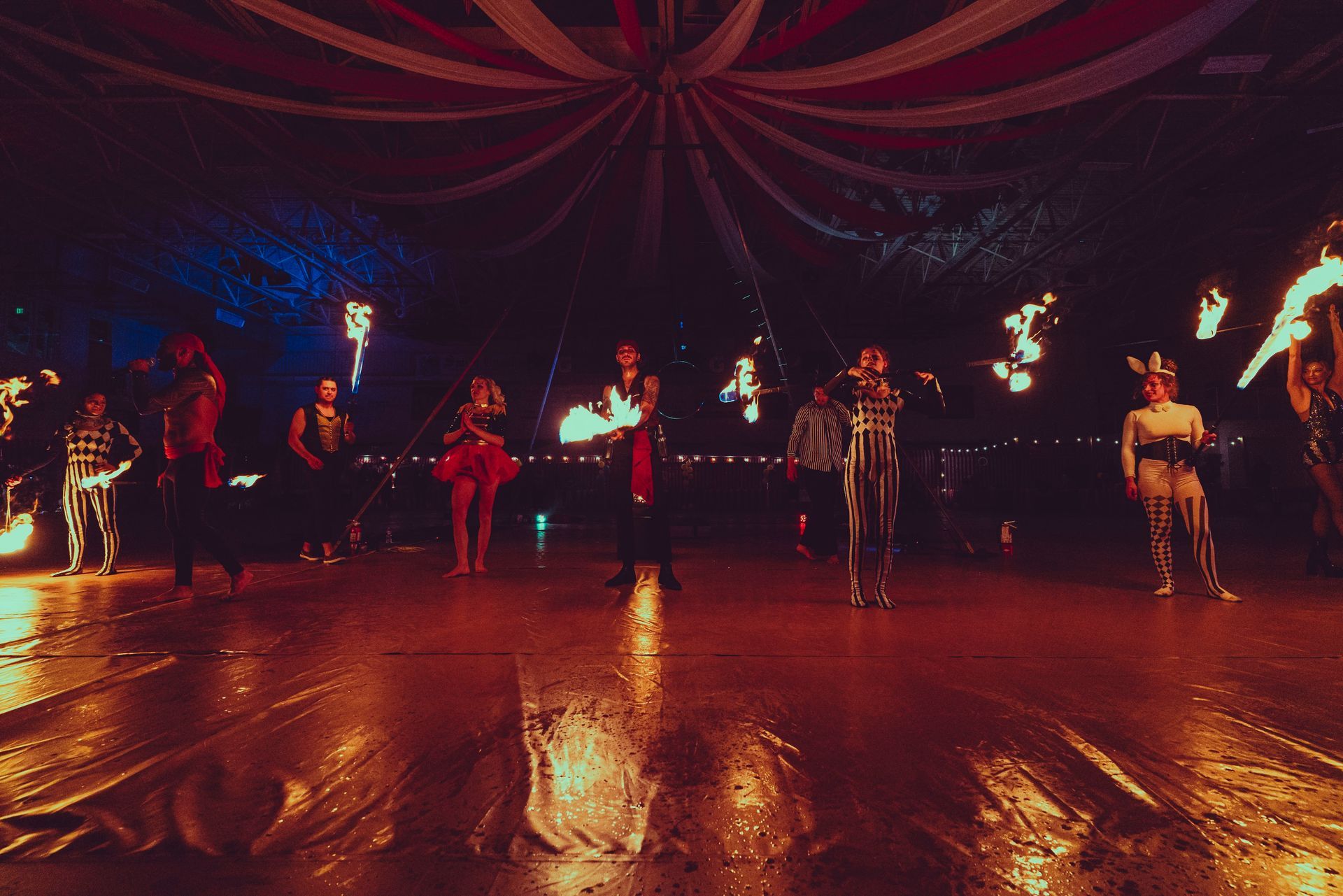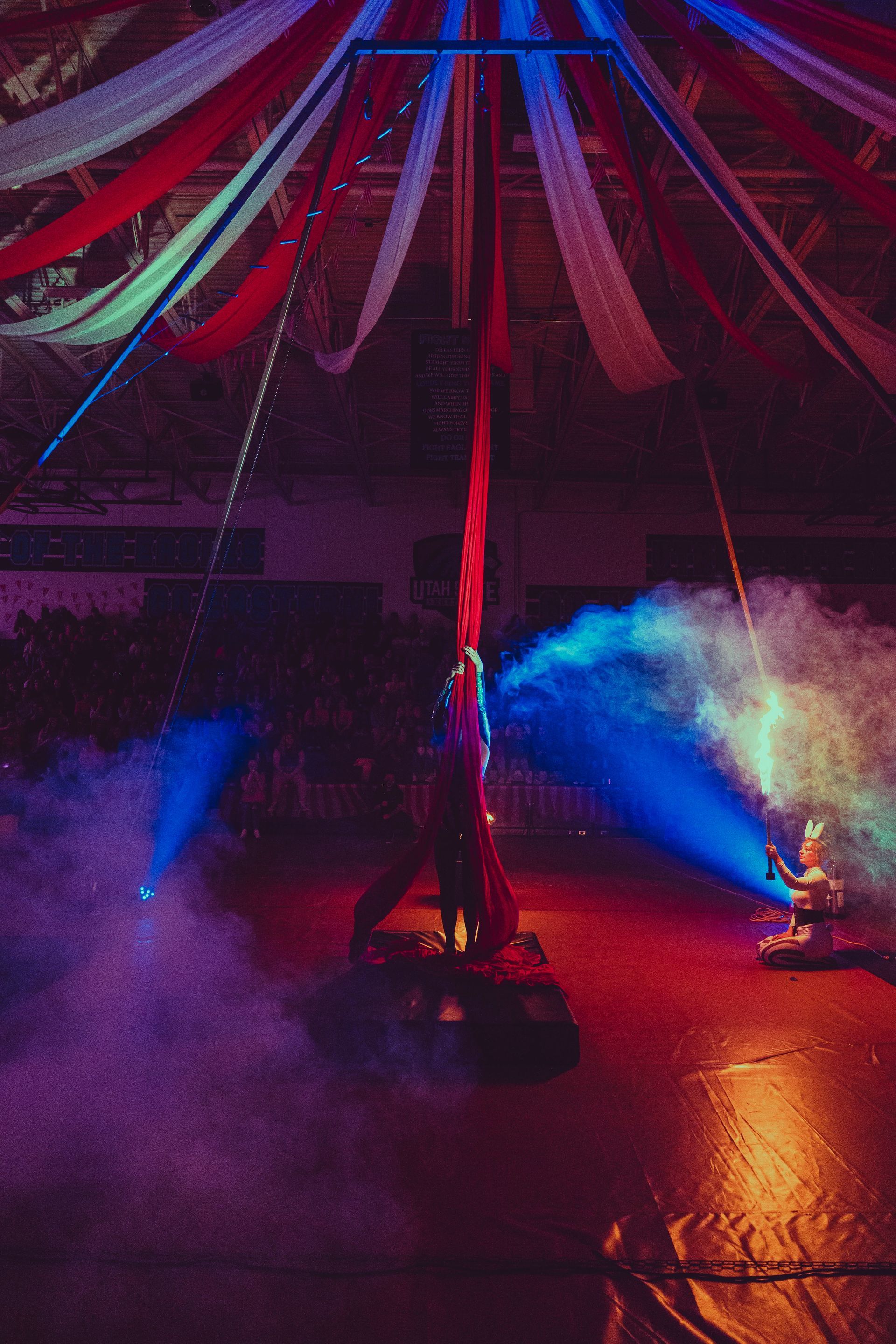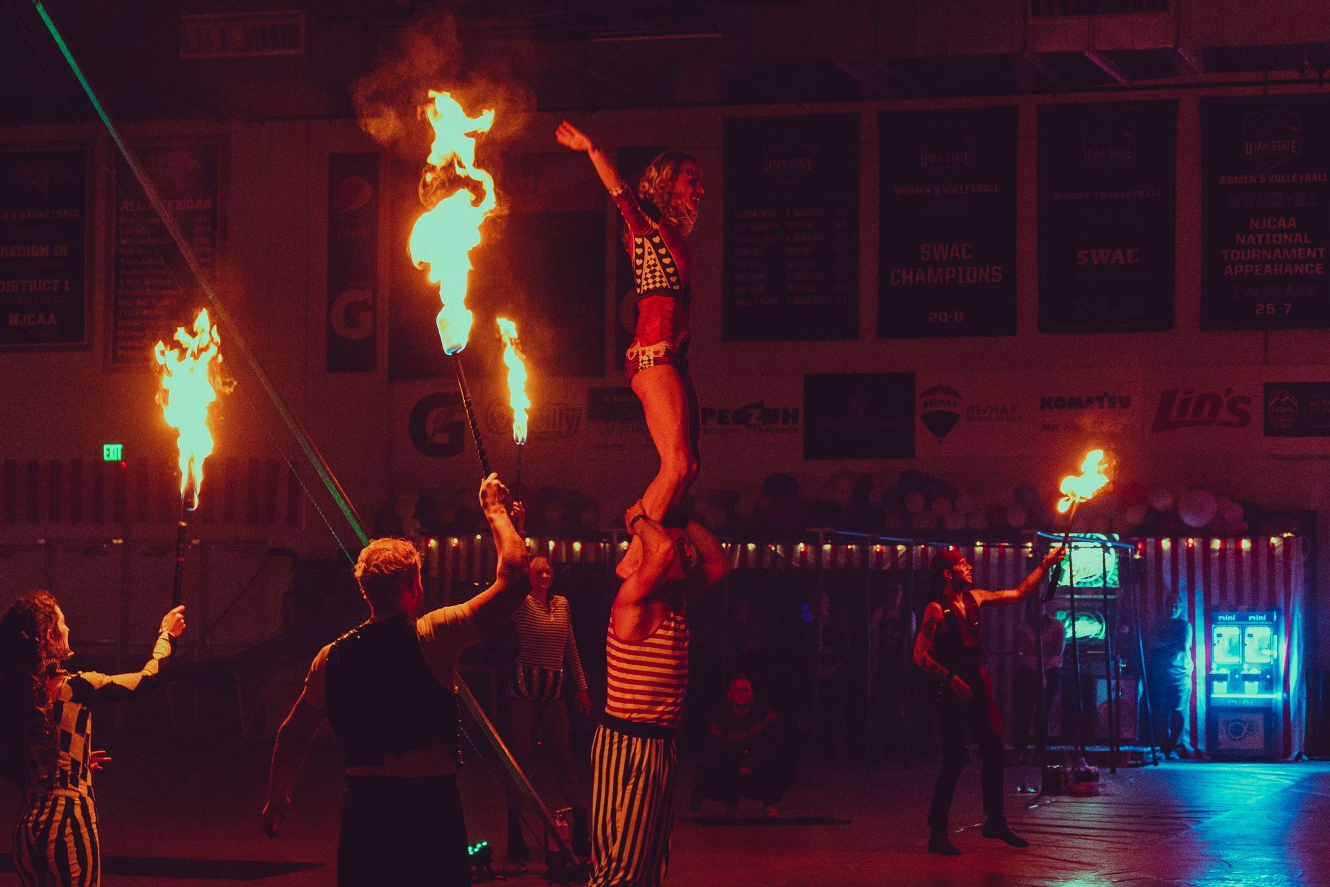 700 High School Grads • 9 Fire Performers • 5 Aerialists • 6 Acrobats • 4 Fire Breathers • 1 Circus Bunny