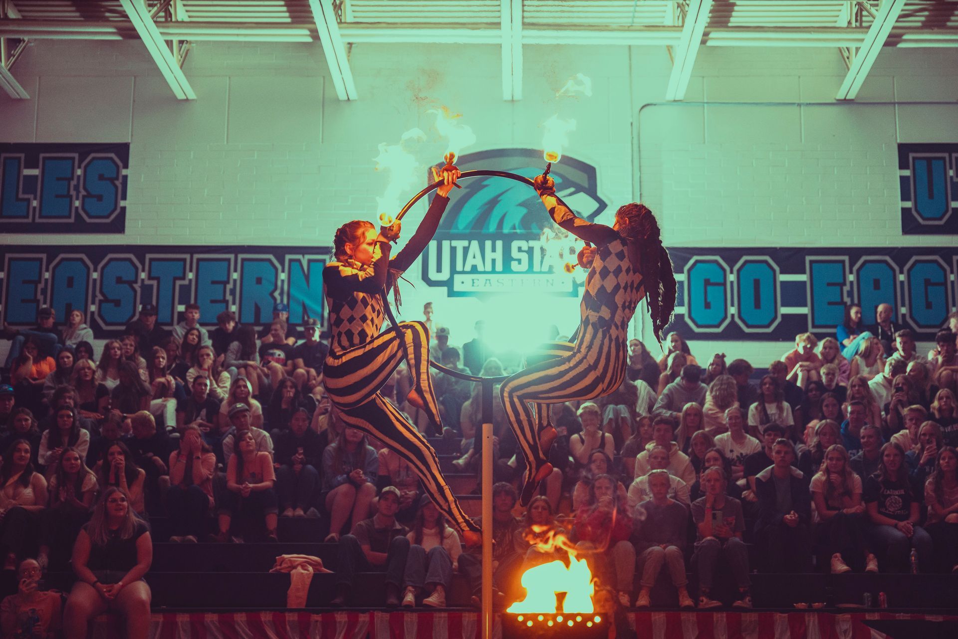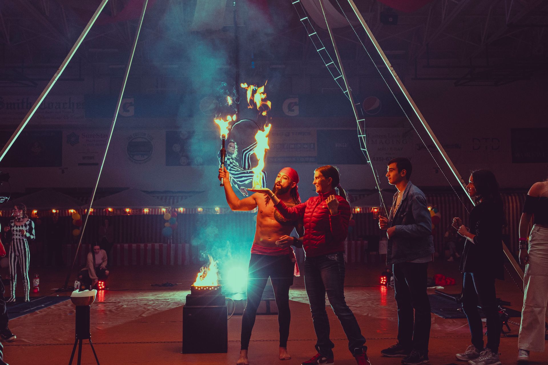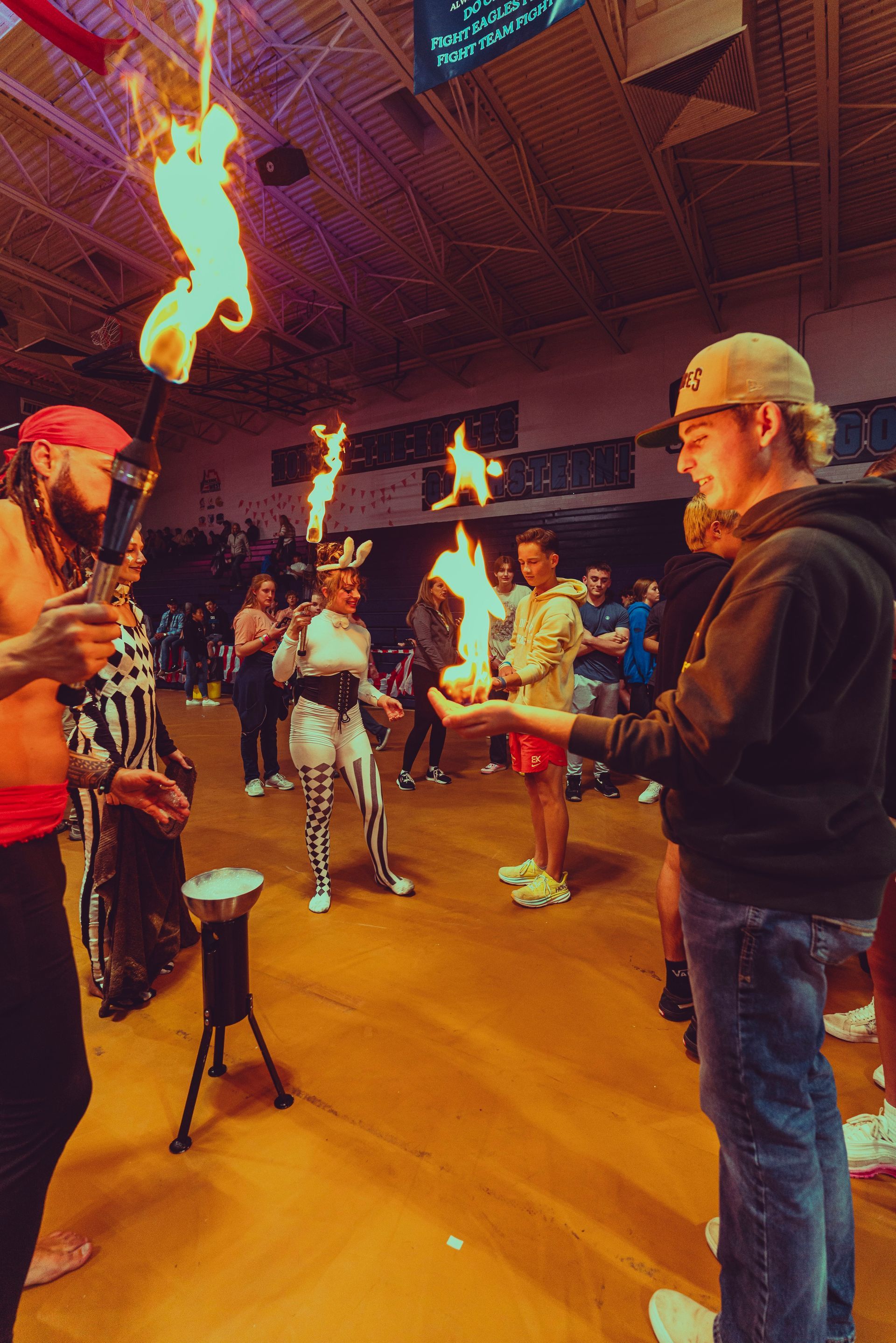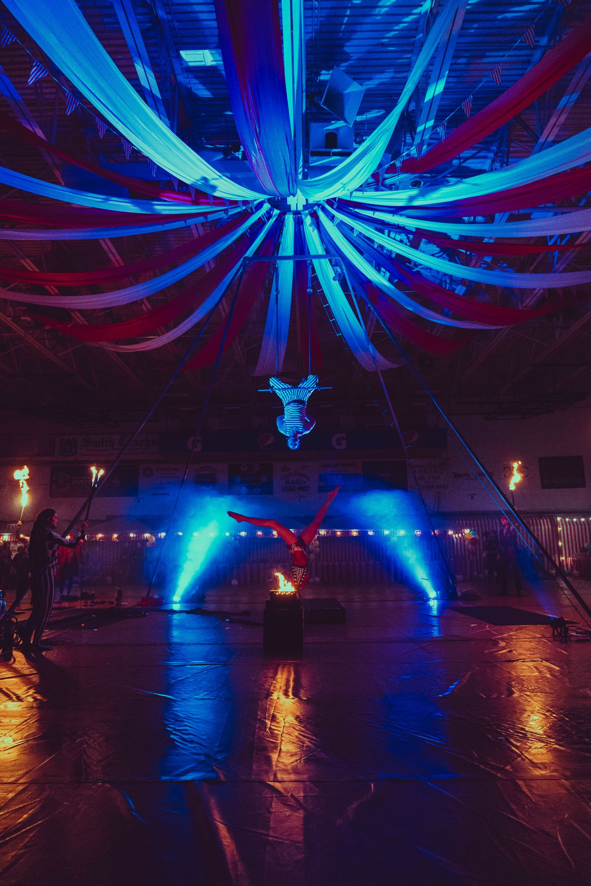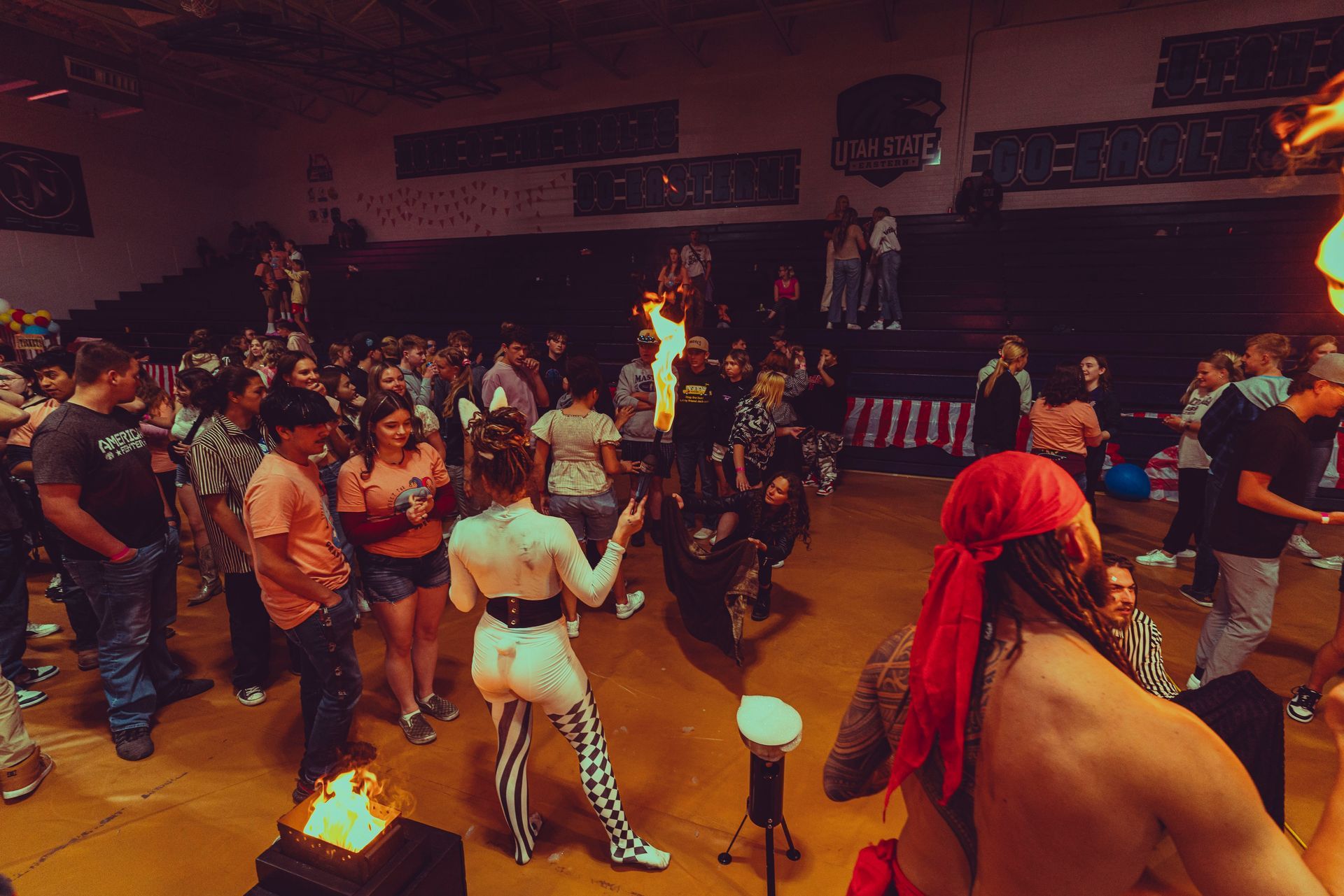 700 High School Grads • 9 Fire Performers • 5 Aerialists • 6 Acrobats • 4 Fire Breathers • 1 Circus Bunny
