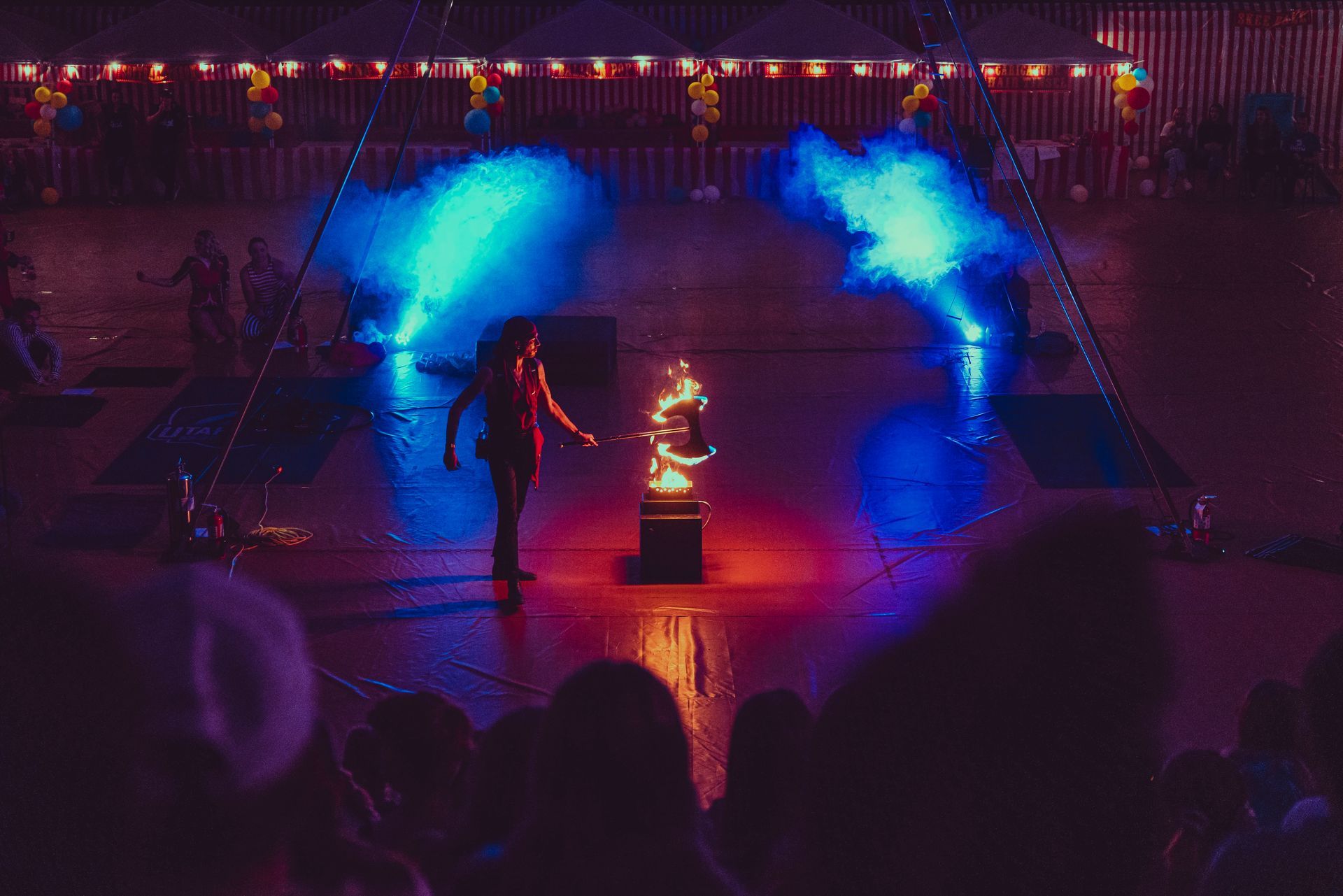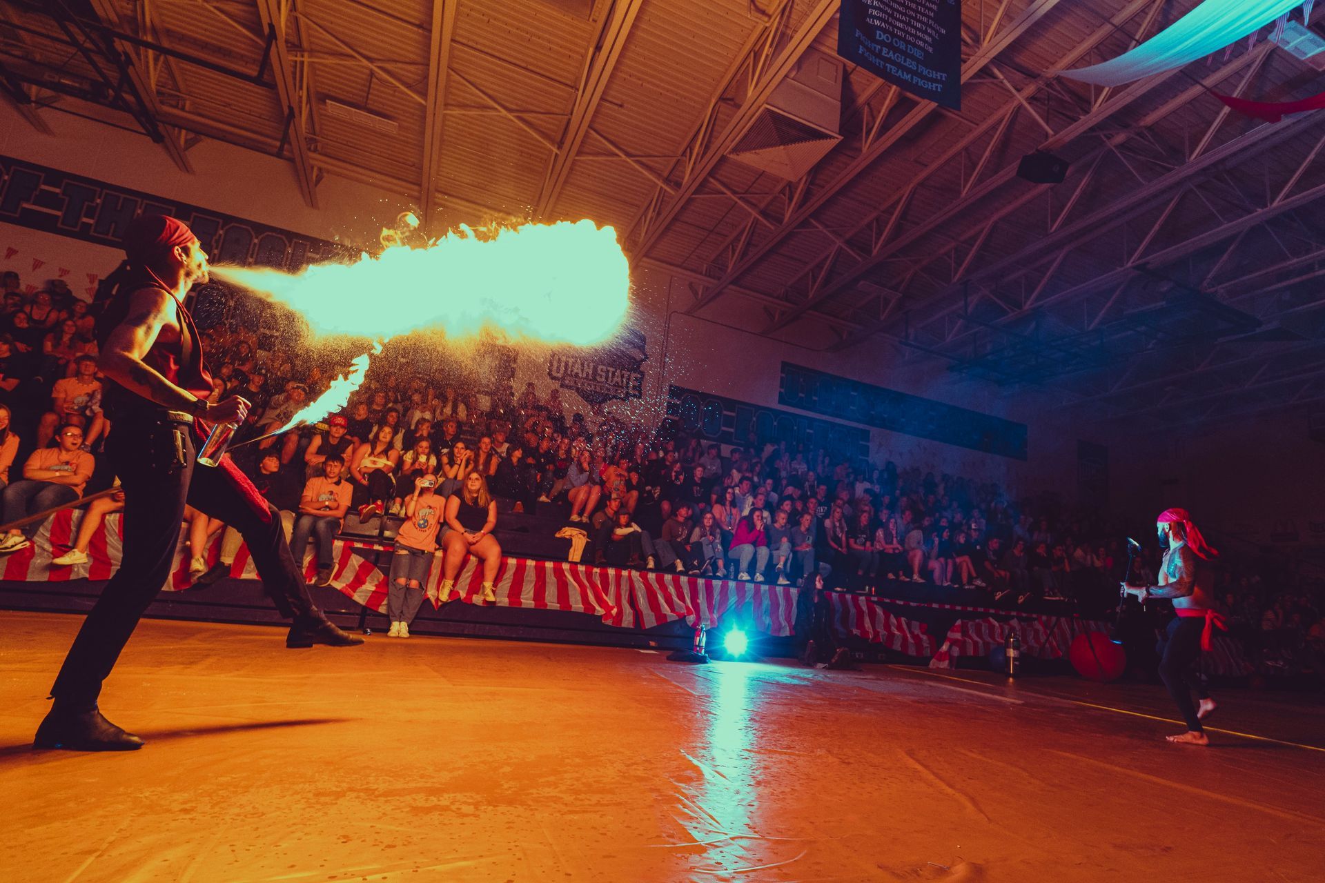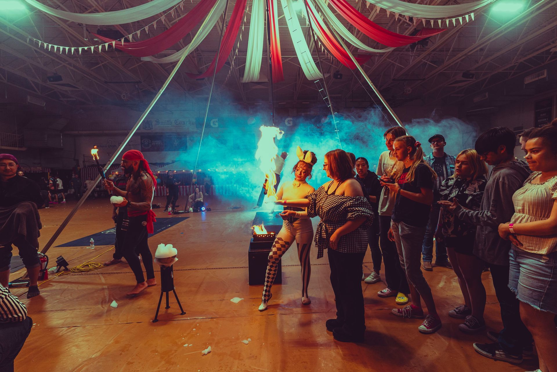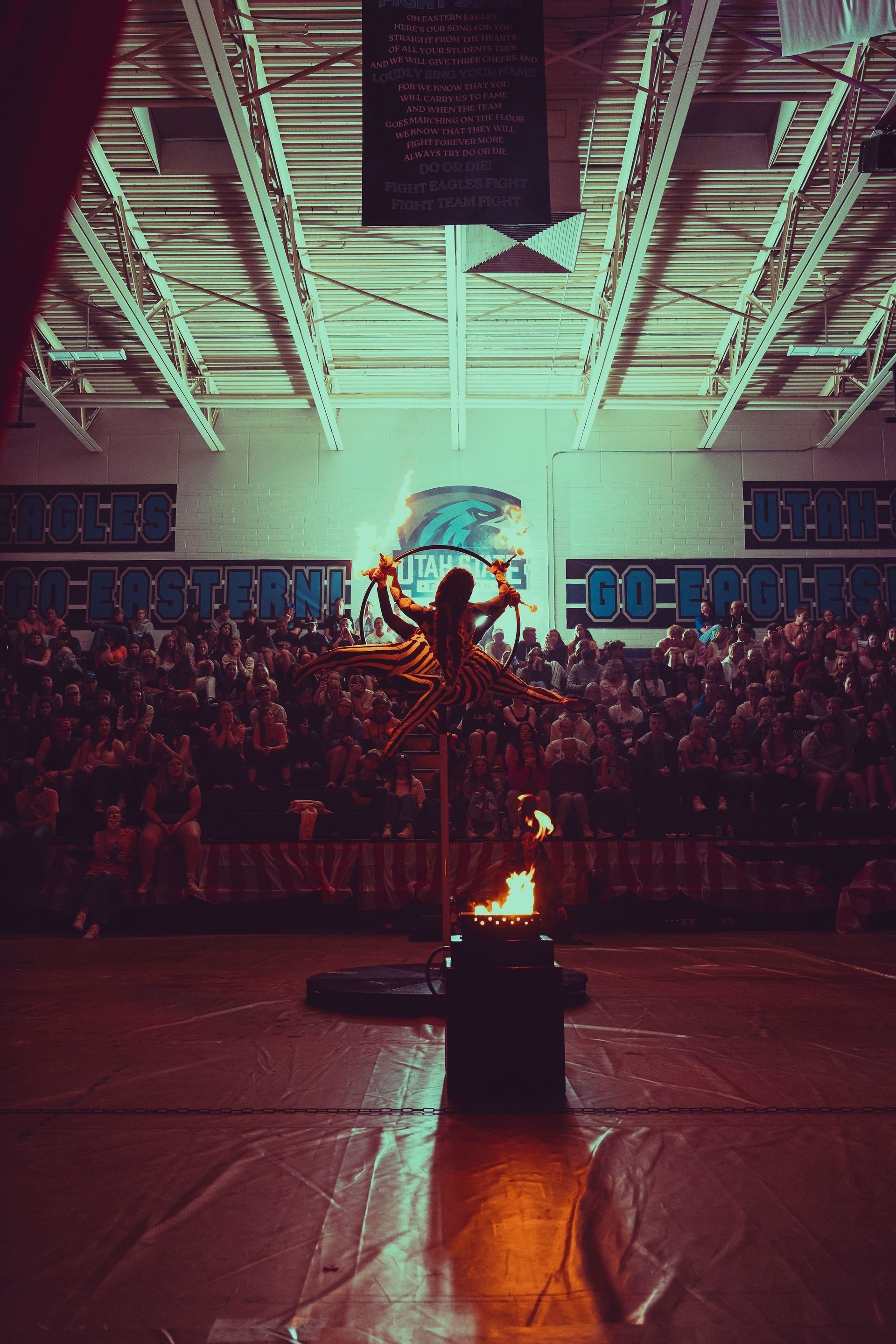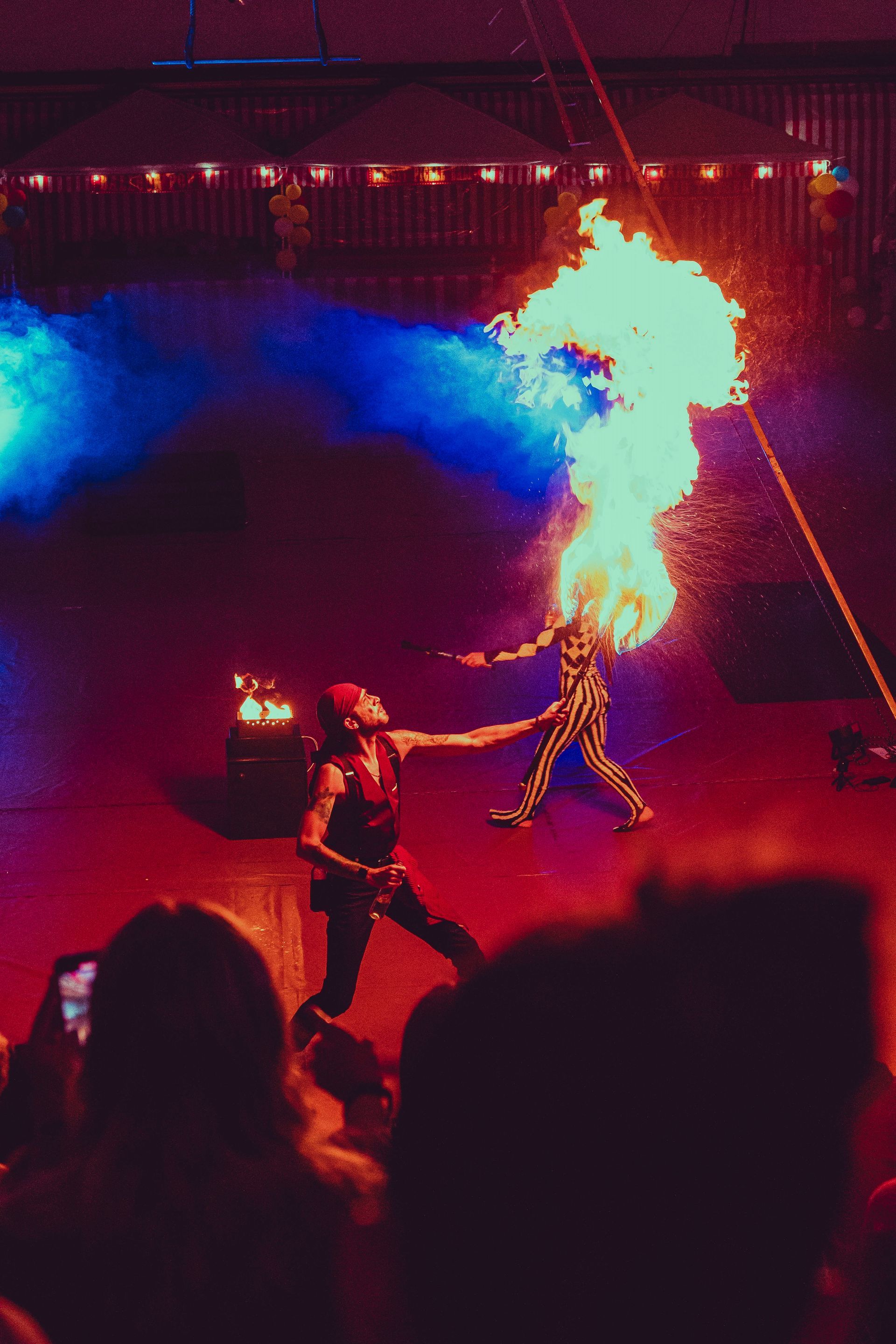 700 High School Grads • 9 Fire Performers • 5 Aerialists • 6 Acrobats • 4 Fire Breathers • 1 Circus Bunny