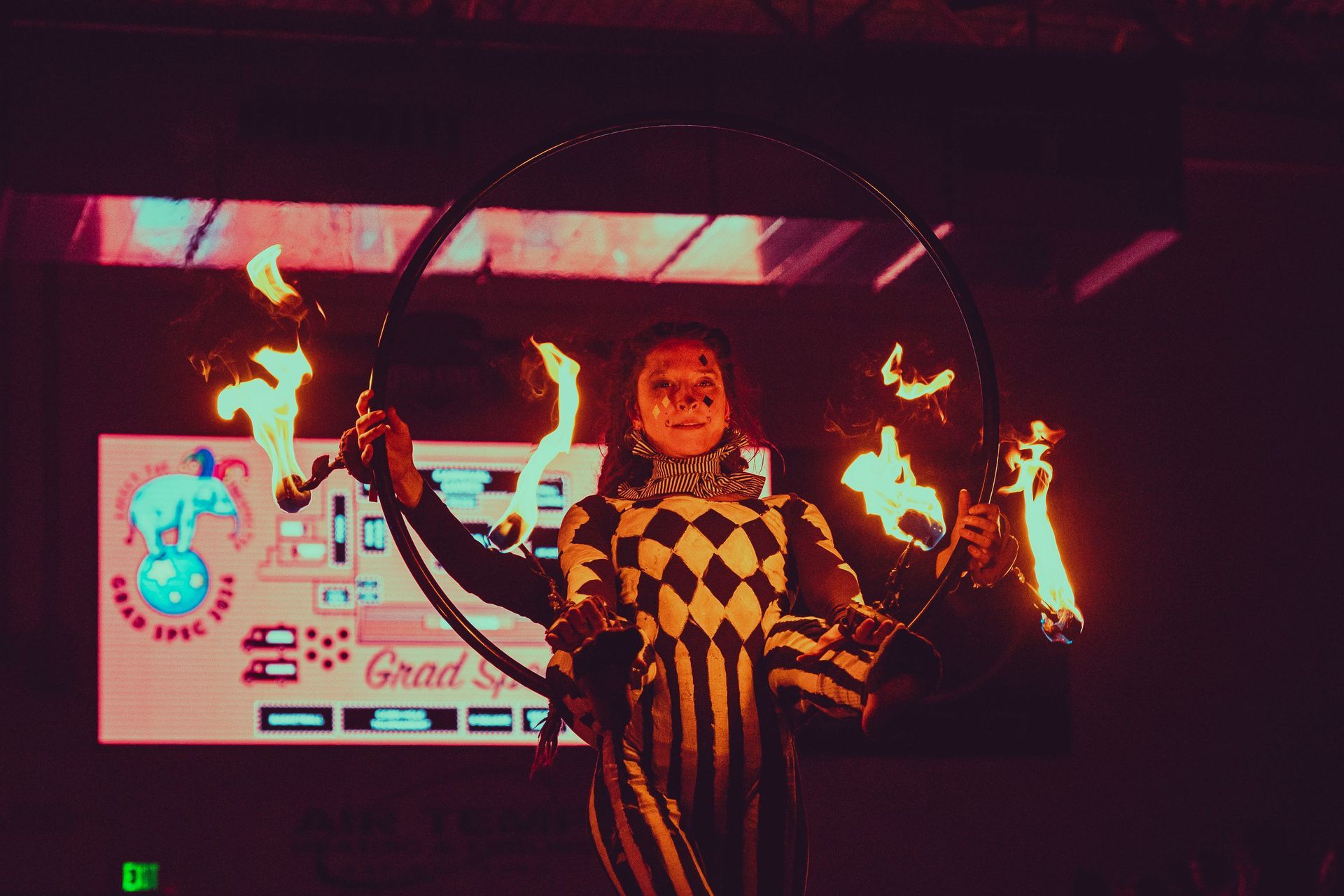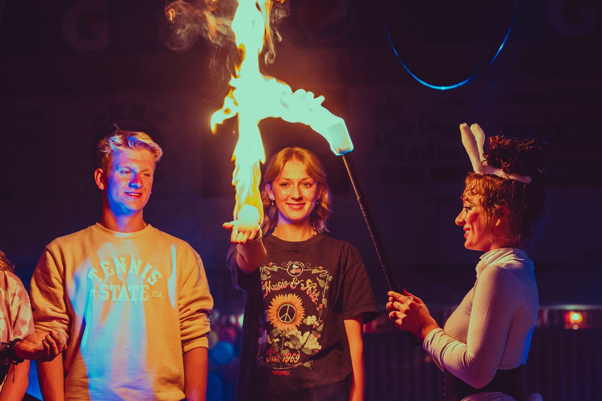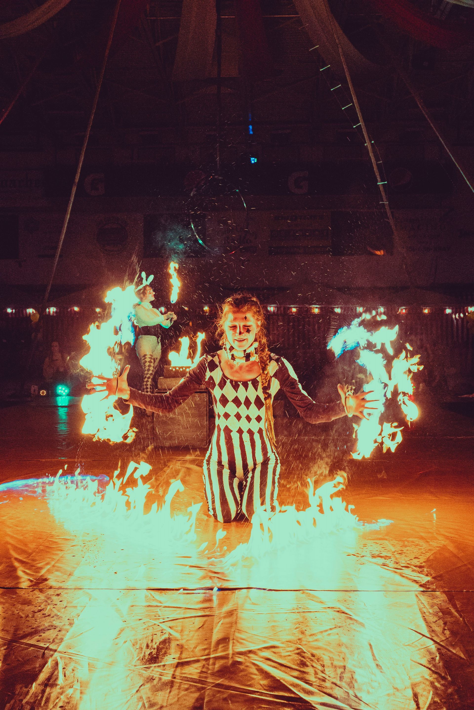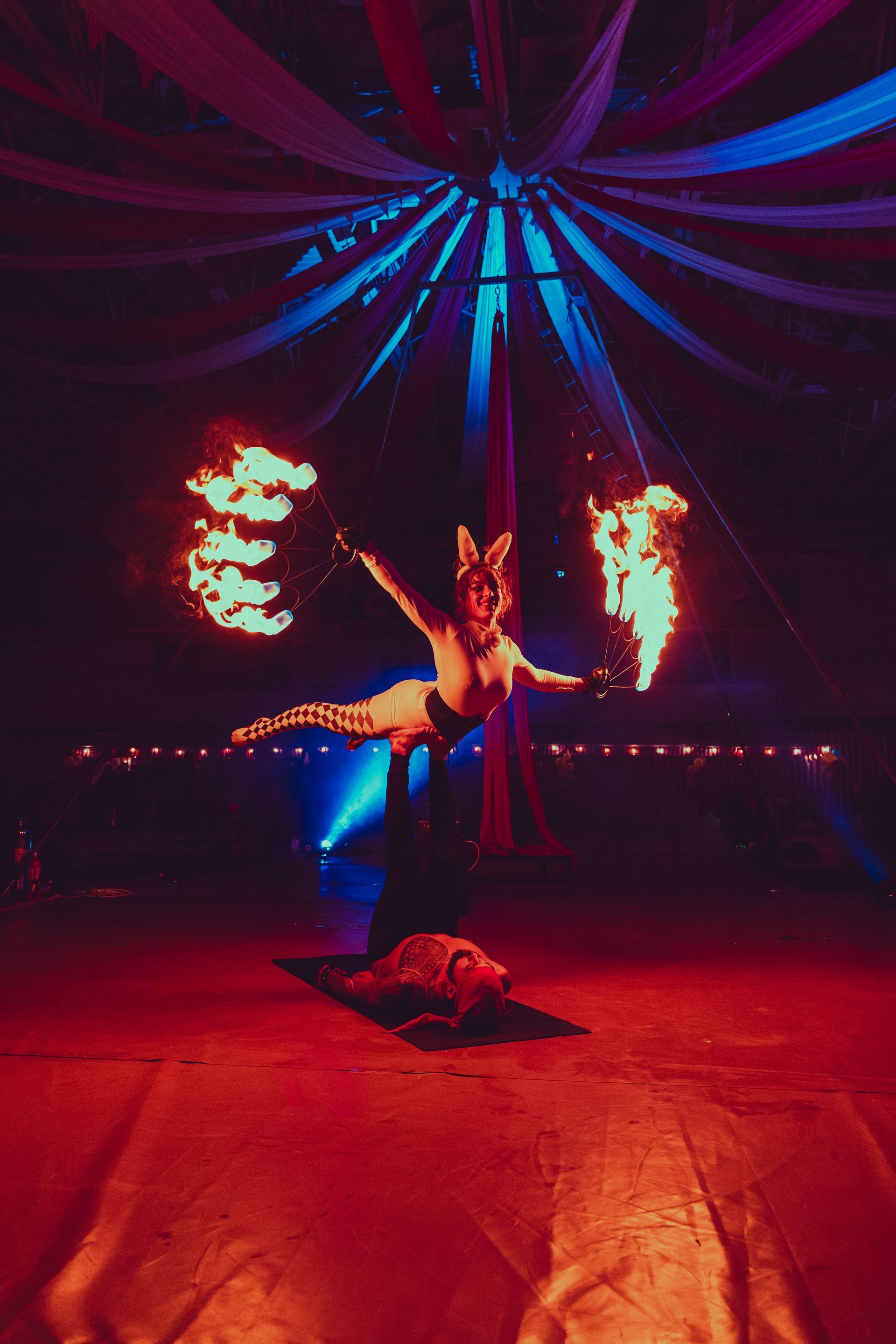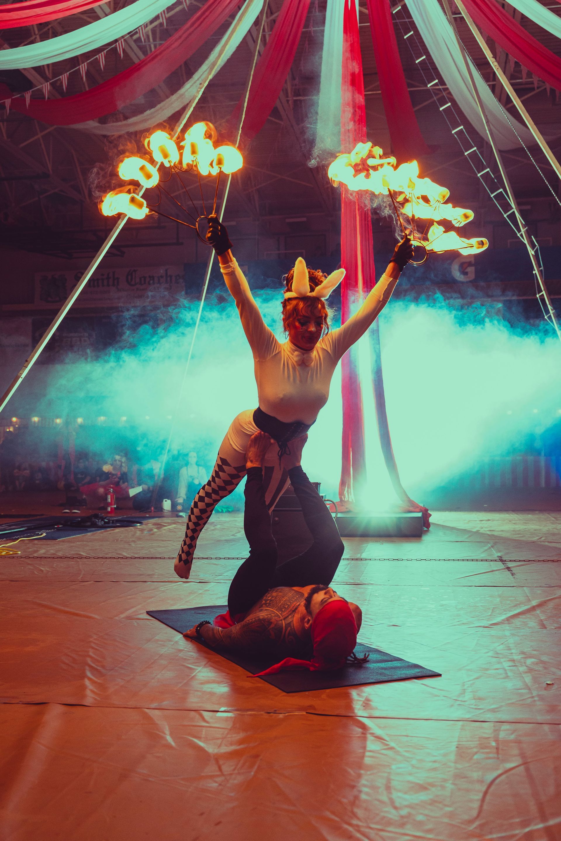 700 High School Grads • 9 Fire Performers • 5 Aerialists • 6 Acrobats • 4 Fire Breathers • 1 Circus Bunny