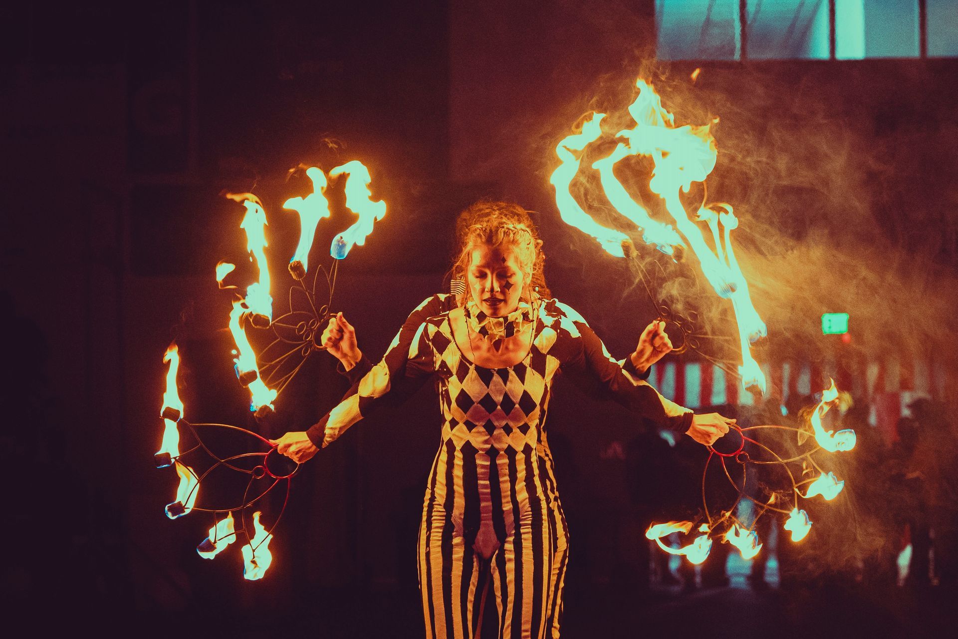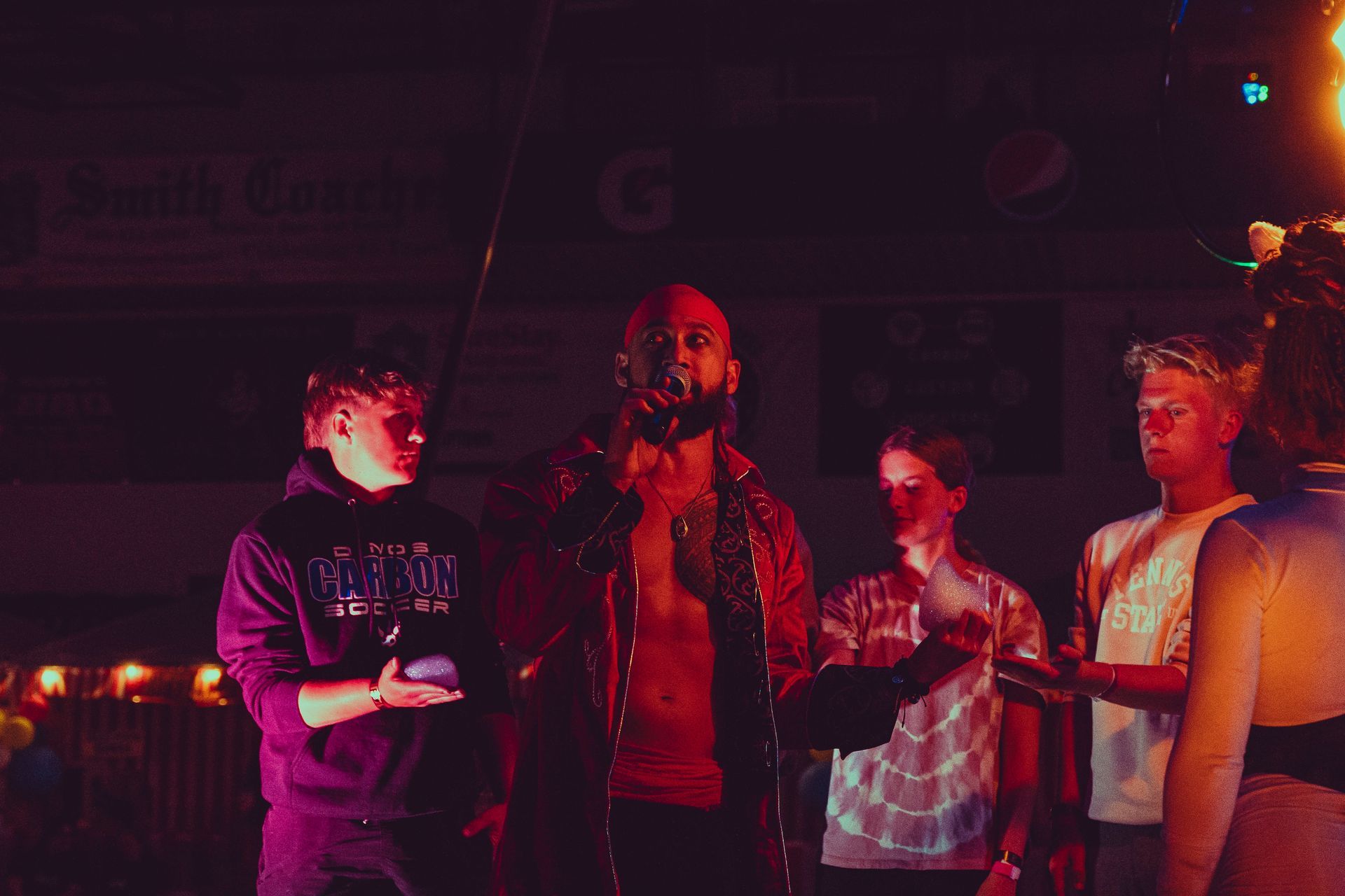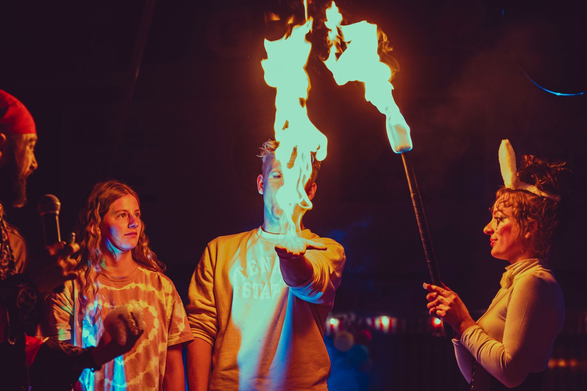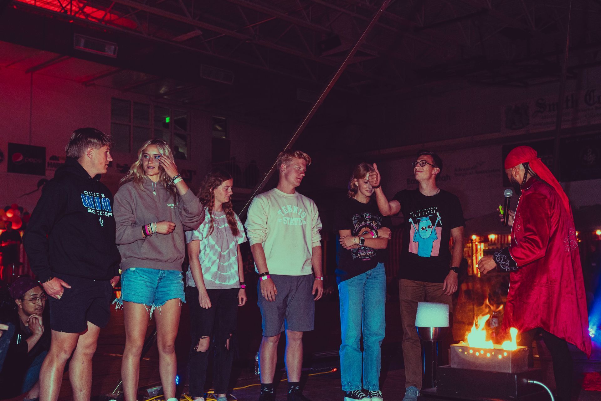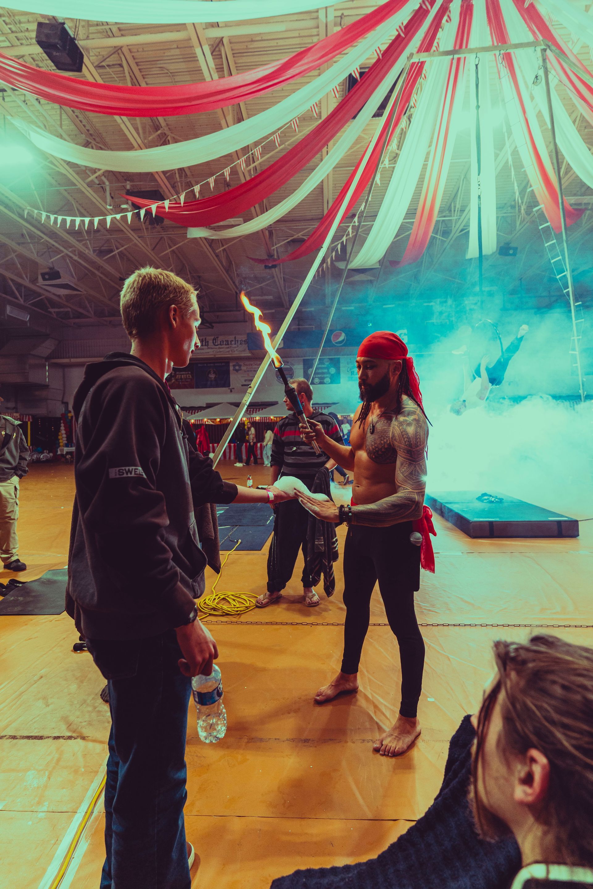 700 High School Grads • 9 Fire Performers • 5 Aerialists • 6 Acrobats • 4 Fire Breathers • 1 Circus Bunny