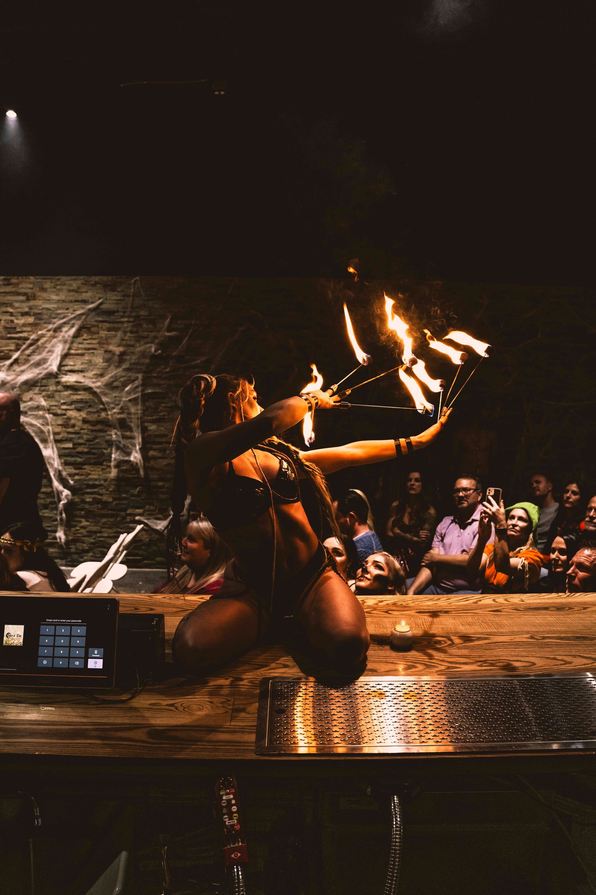 You can watch in the beginning as it "winds up" along with some of the VIP ambient hour. This was a SIX senses EXPERIENCE. From having an inverted tasting experience, to carnival & circus smells, to tactile touch experiences with snakes to hold, aerial bartending, body taped haunted clown bartenders, bar-top fire dancing & creepy fire demons approaching you to share their deepest, darkest inner demons that they have overcome.