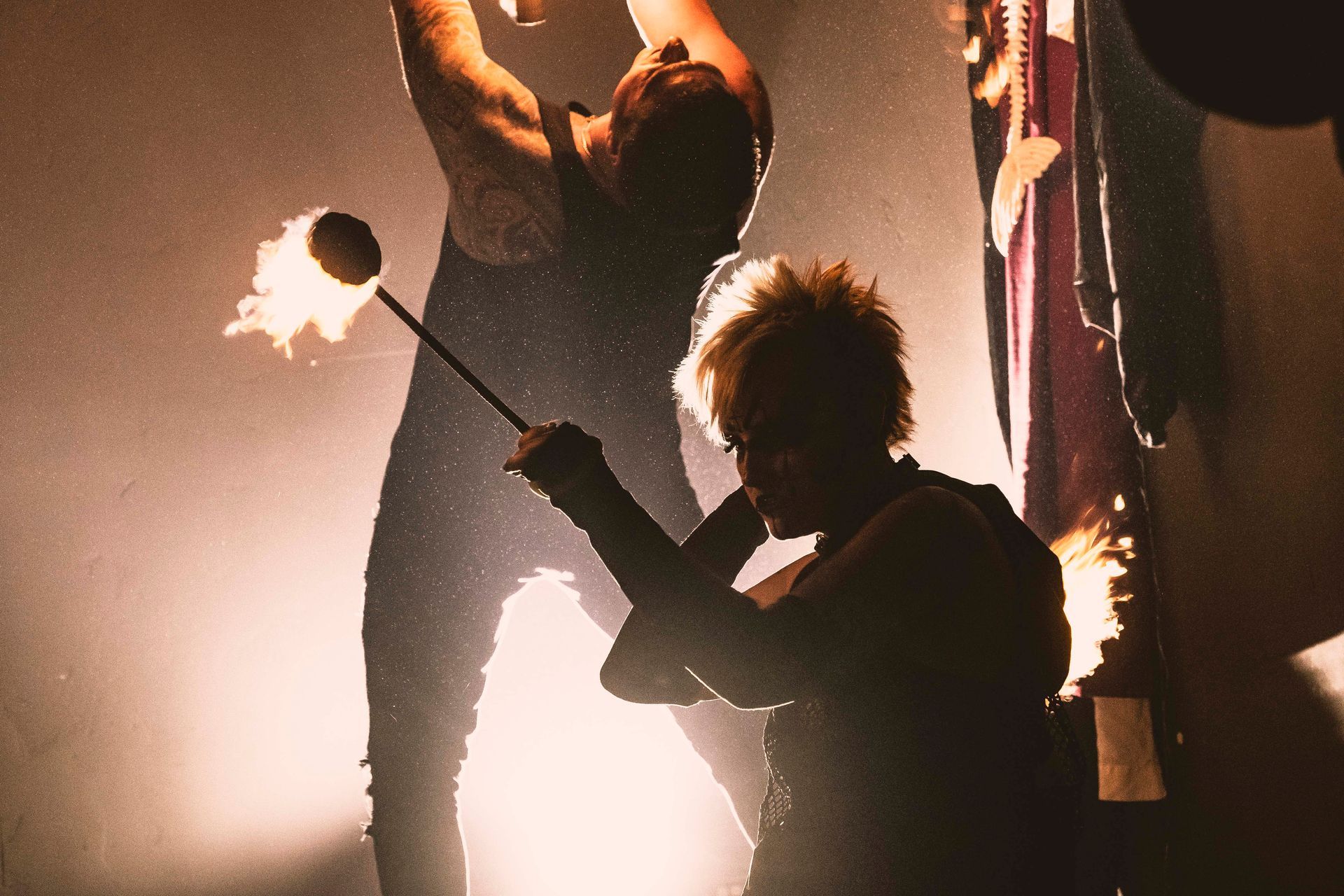 1 Cause • 16 Fire Performers • 4 Aerialists • 5 Acrobats • 2 Body Taped Bartenders • 4 Fire Safeties • 3 Snakes • 6 Senses • 230 Guests SOLD OUT